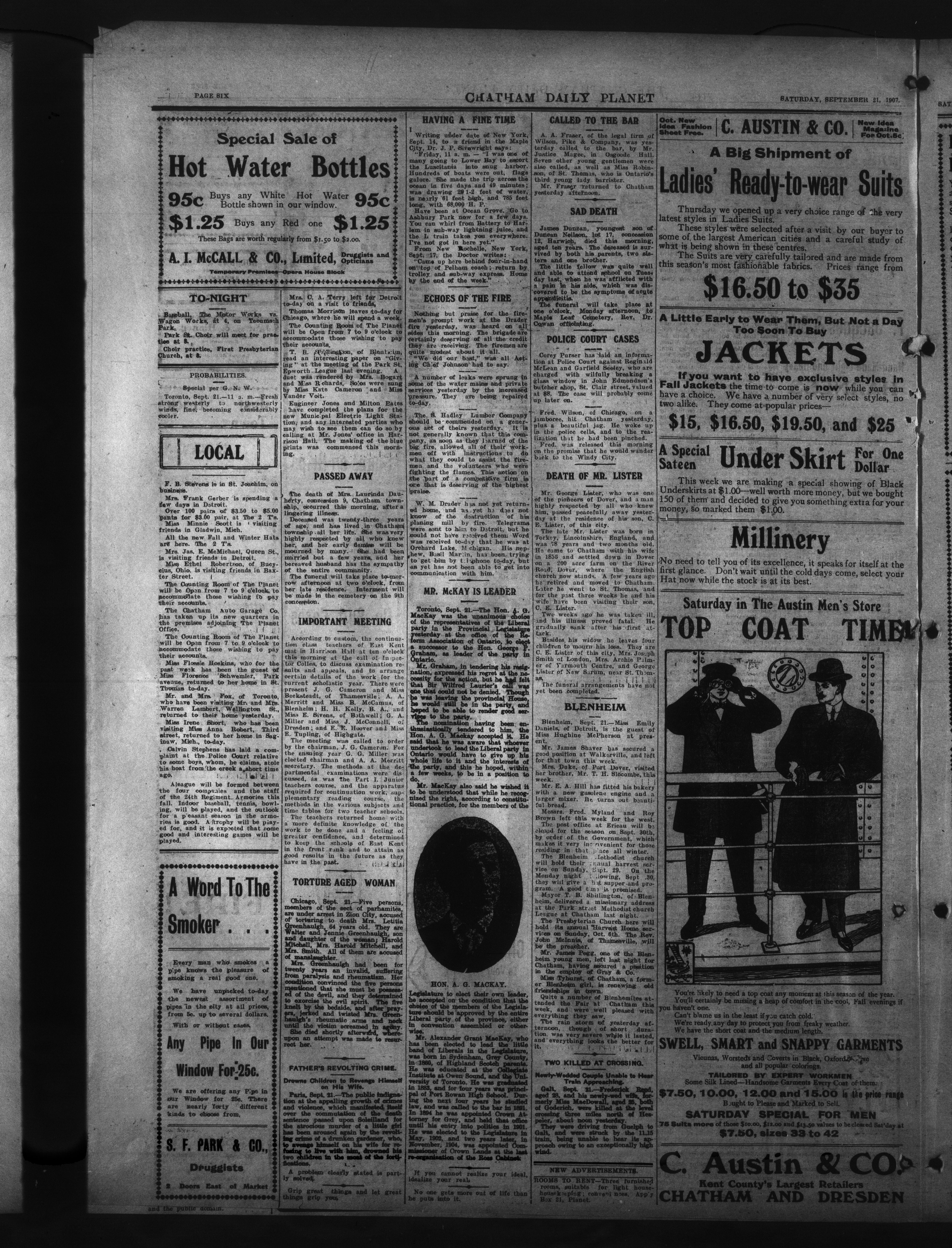 - The Chatham Daily Planet : Vol. XVI, No. 227 (September 21, 1907)