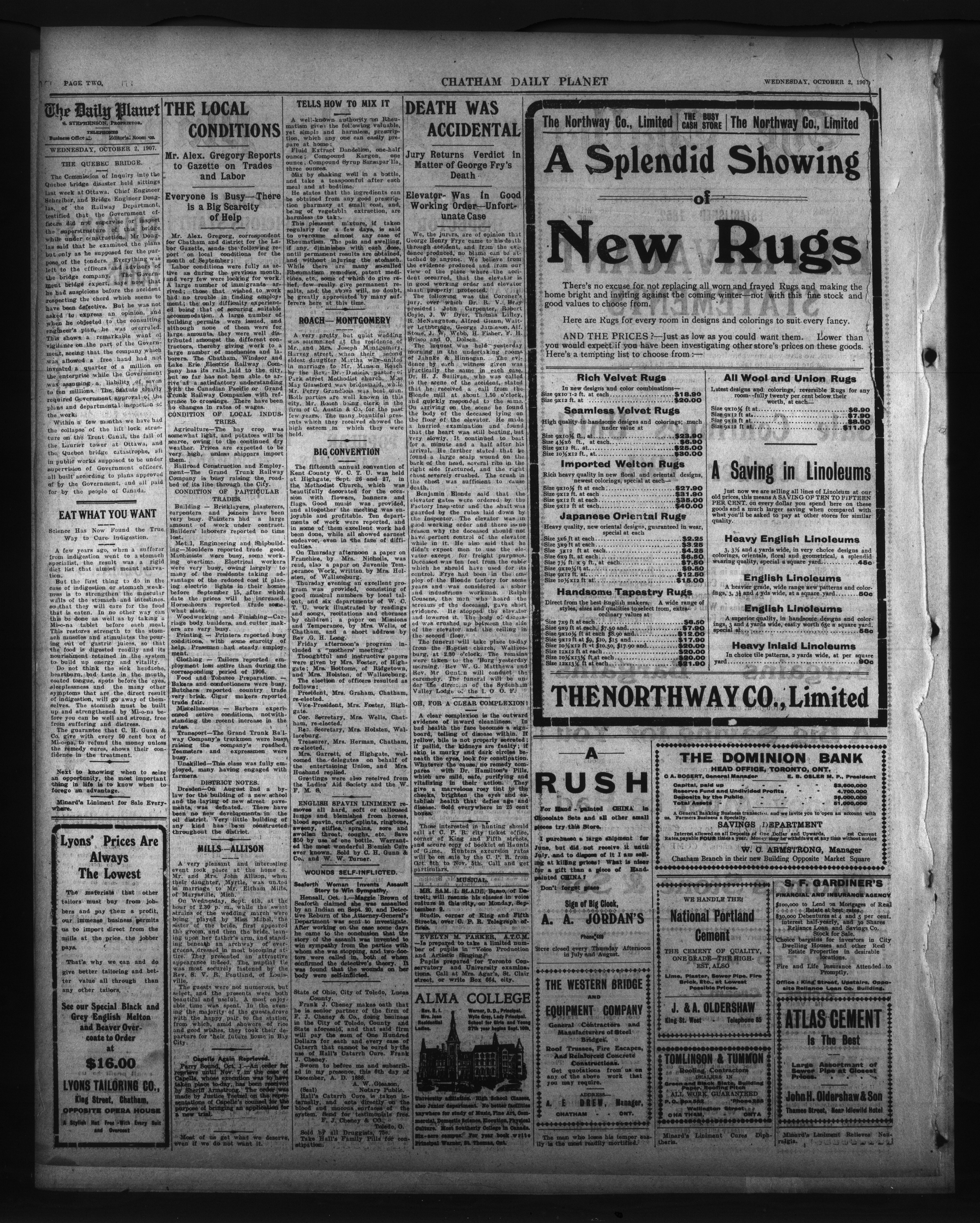 - The Chatham Daily Planet : Vol. XVI, No. 236 (October 2, 1907)