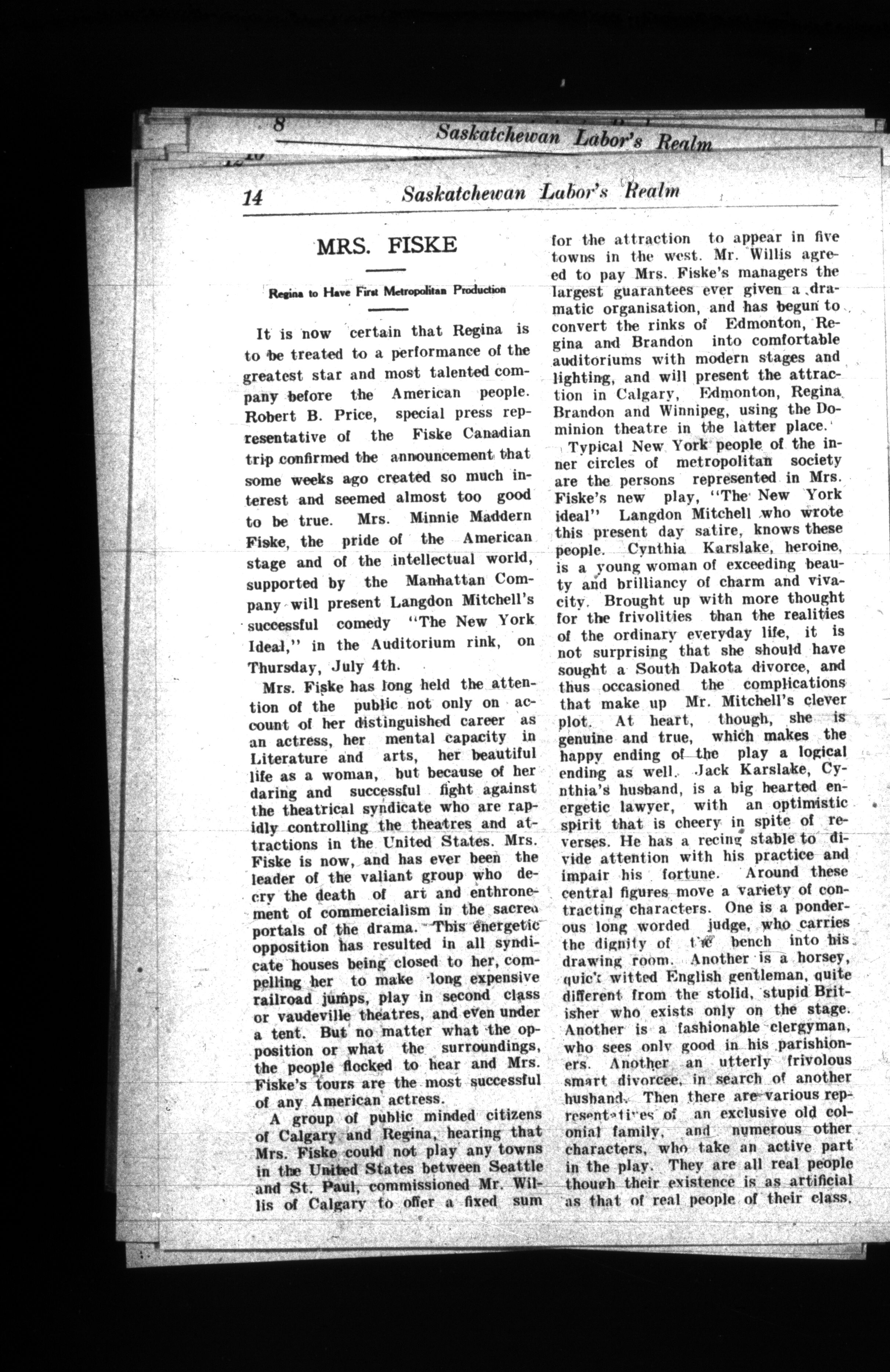 Saskatchewan Labor's Realm : Vol. 1, No. 4 (June 21, 1907)