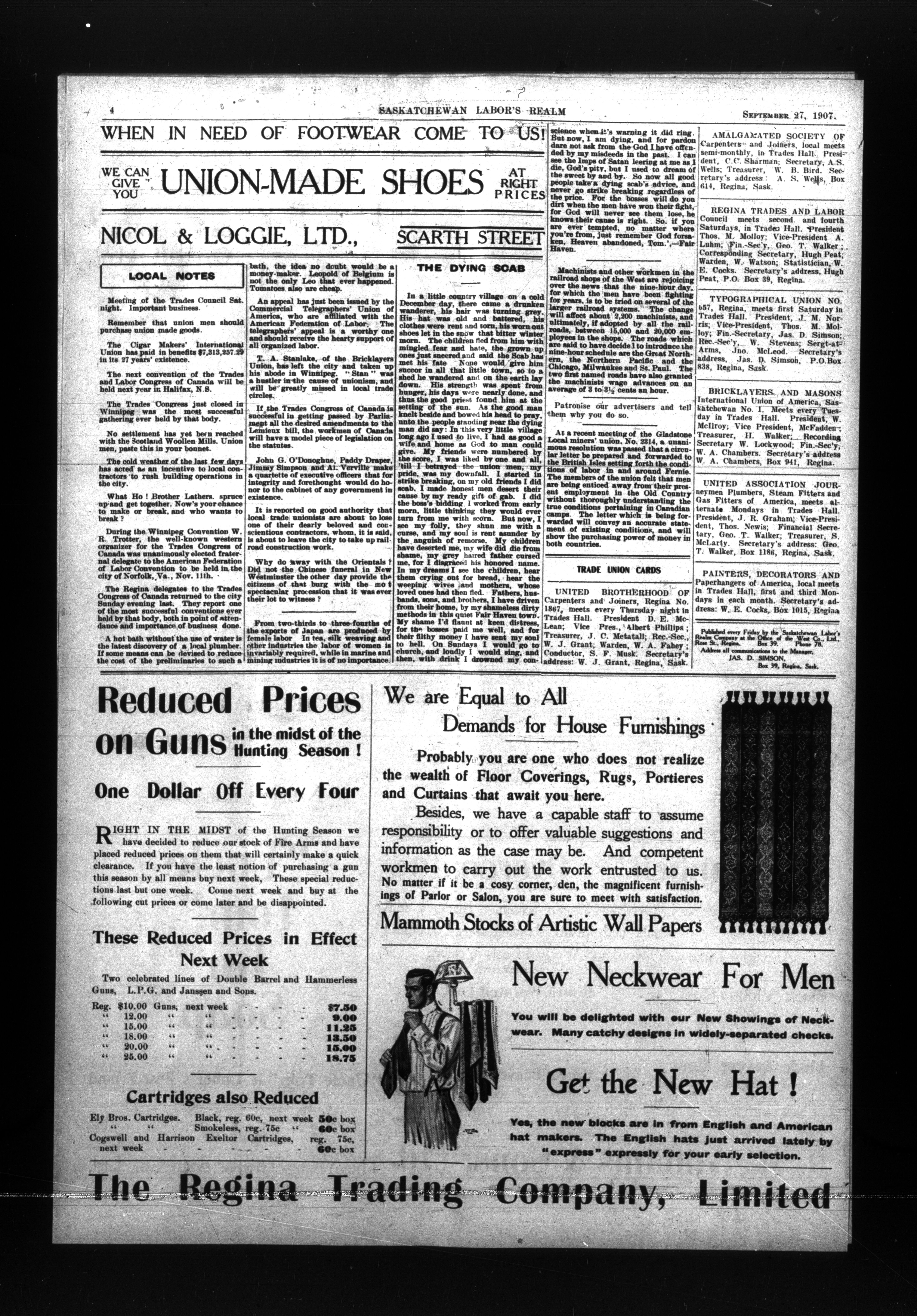 - Saskatchewan Labor's Realm : Vol. 1, No. 16 (September 27, 1907)