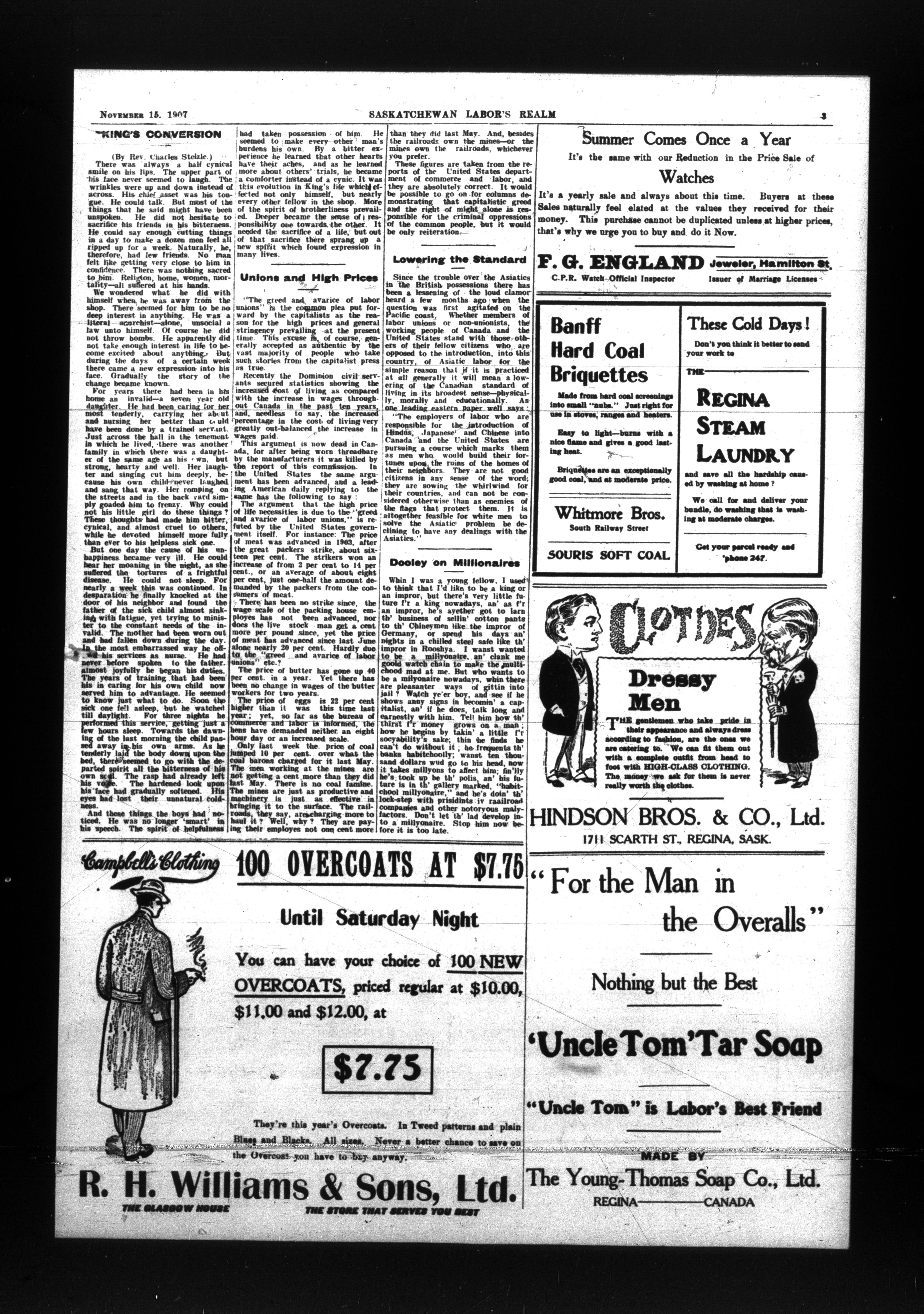 - Saskatchewan Labor's Realm : Vol. 1, No. 23 (November 15, 1907)