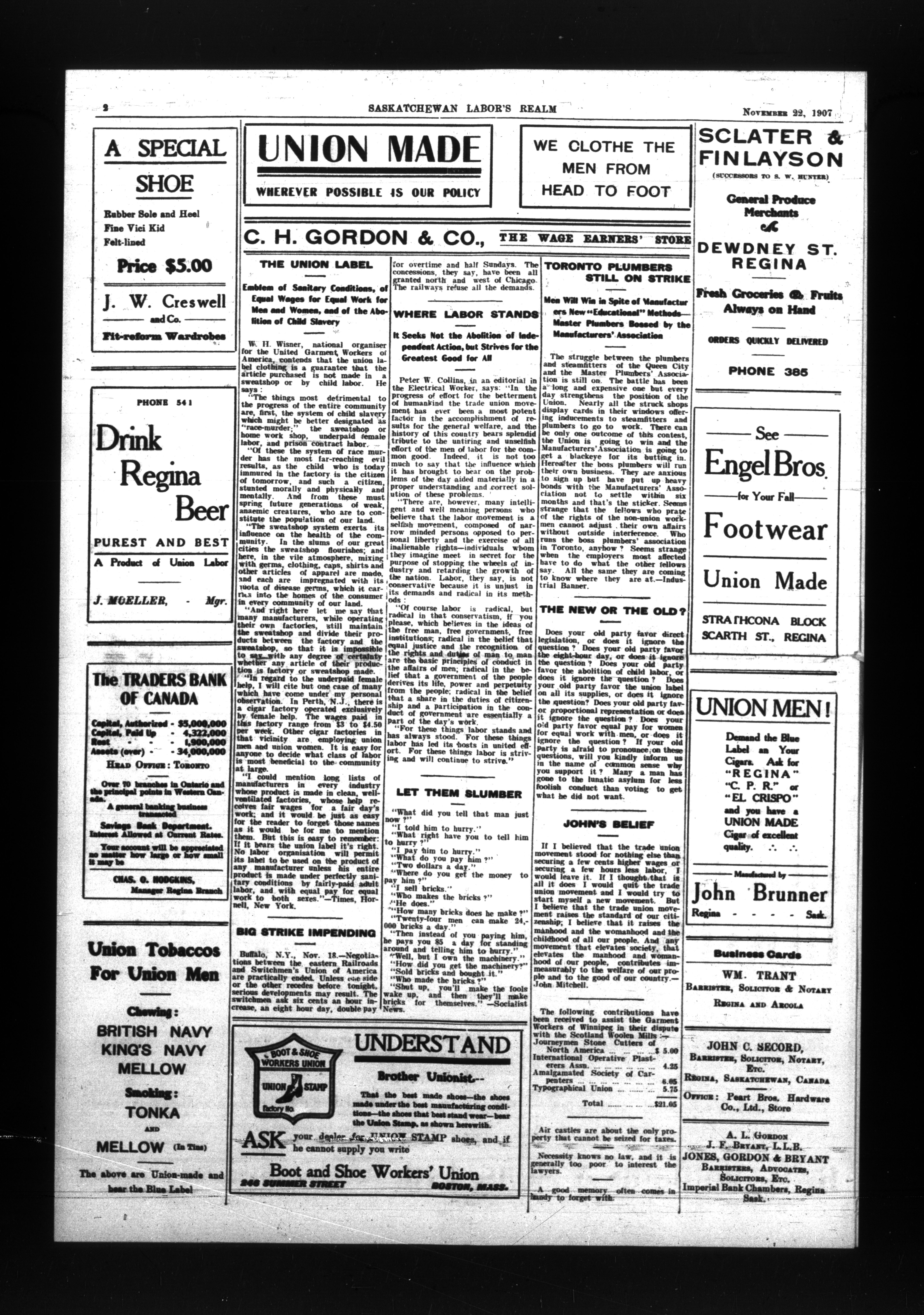 - Saskatchewan Labor's Realm : Vol, 1, No. 24 (November 22, 1907)