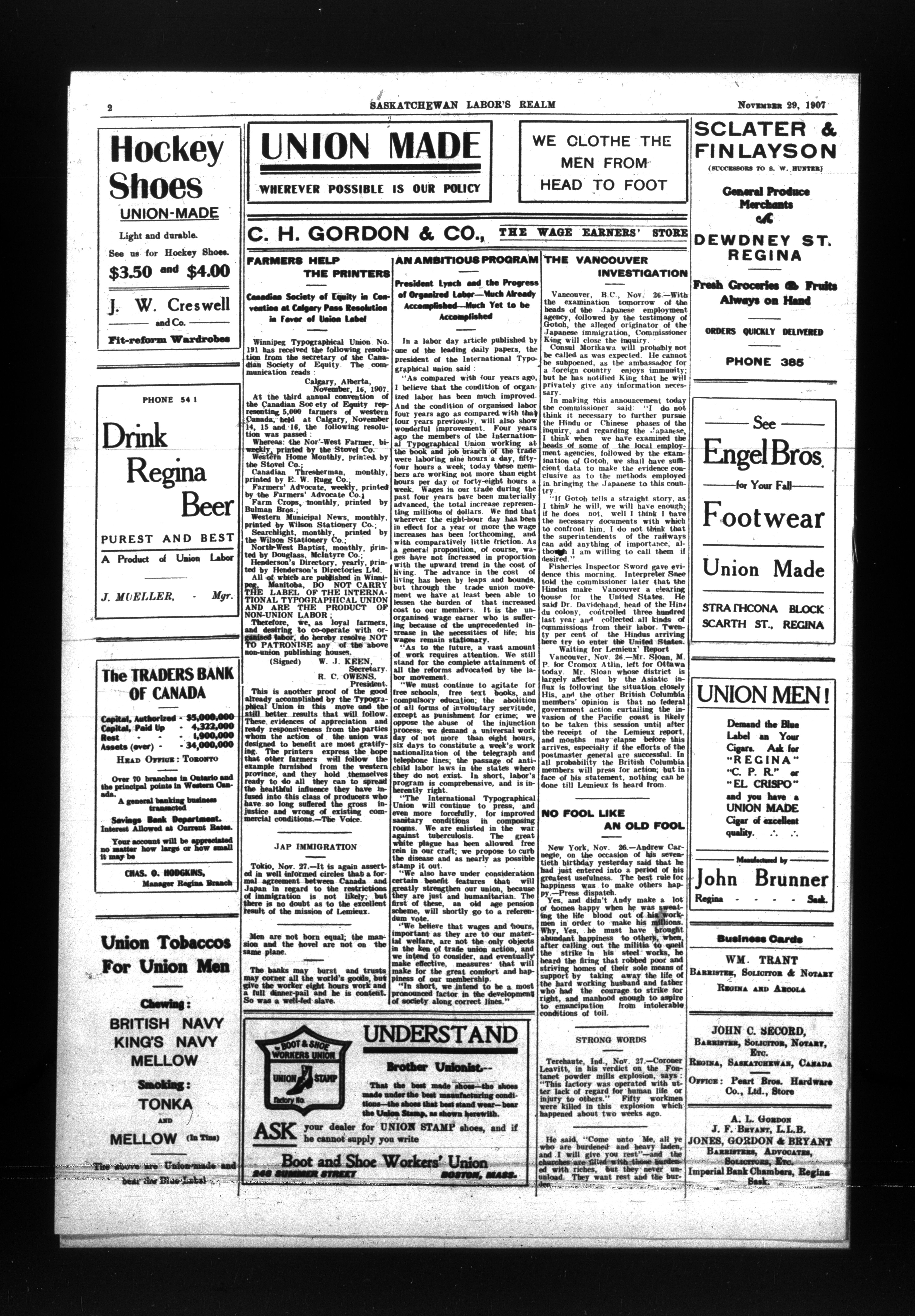- Saskatchewan Labor's Realm : Vol. 1, No. 25 (November 29, 1907)