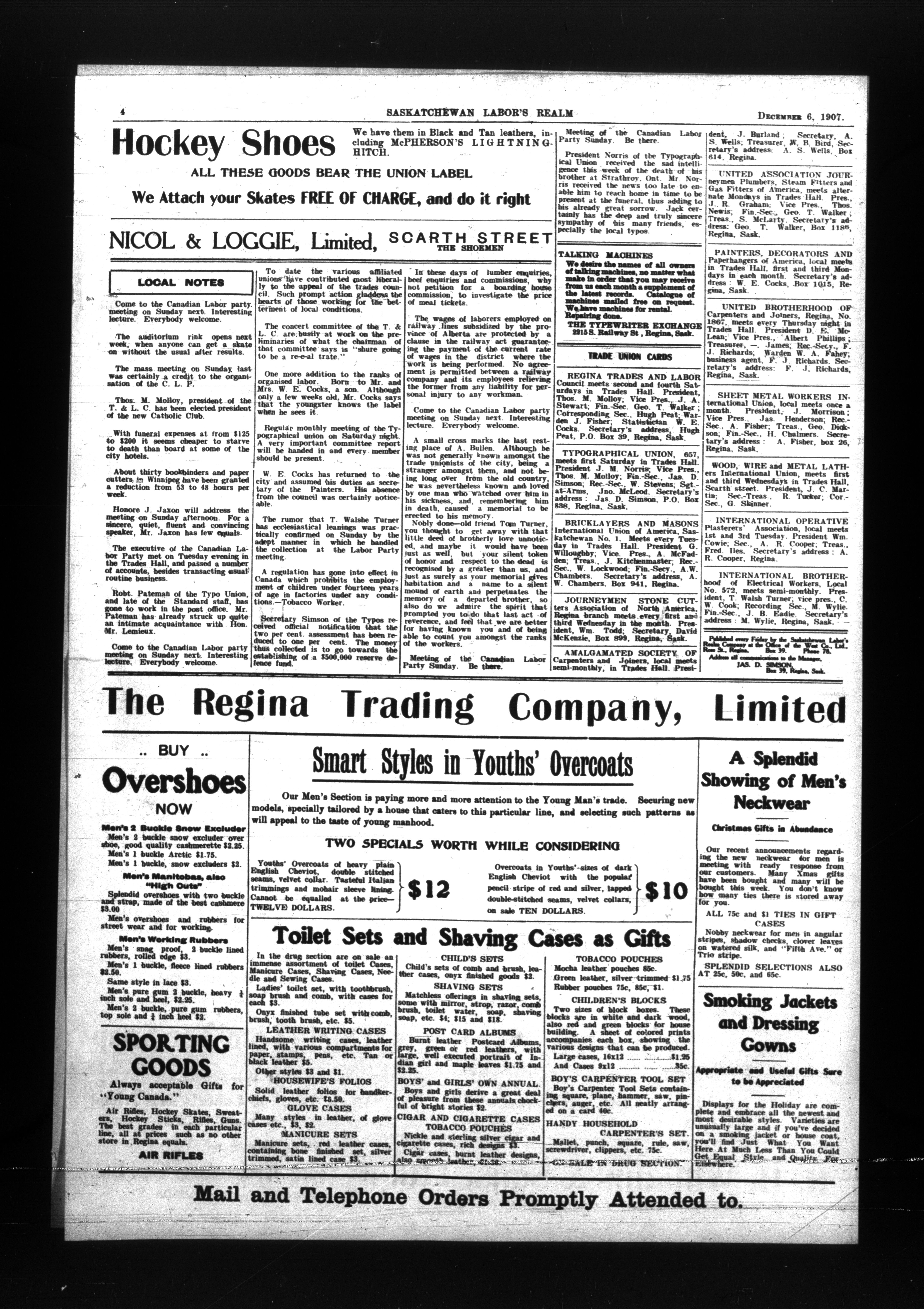 - Saskatchewan Labor's Realm : Vol. 1, No. 26 (December 6, 1907)