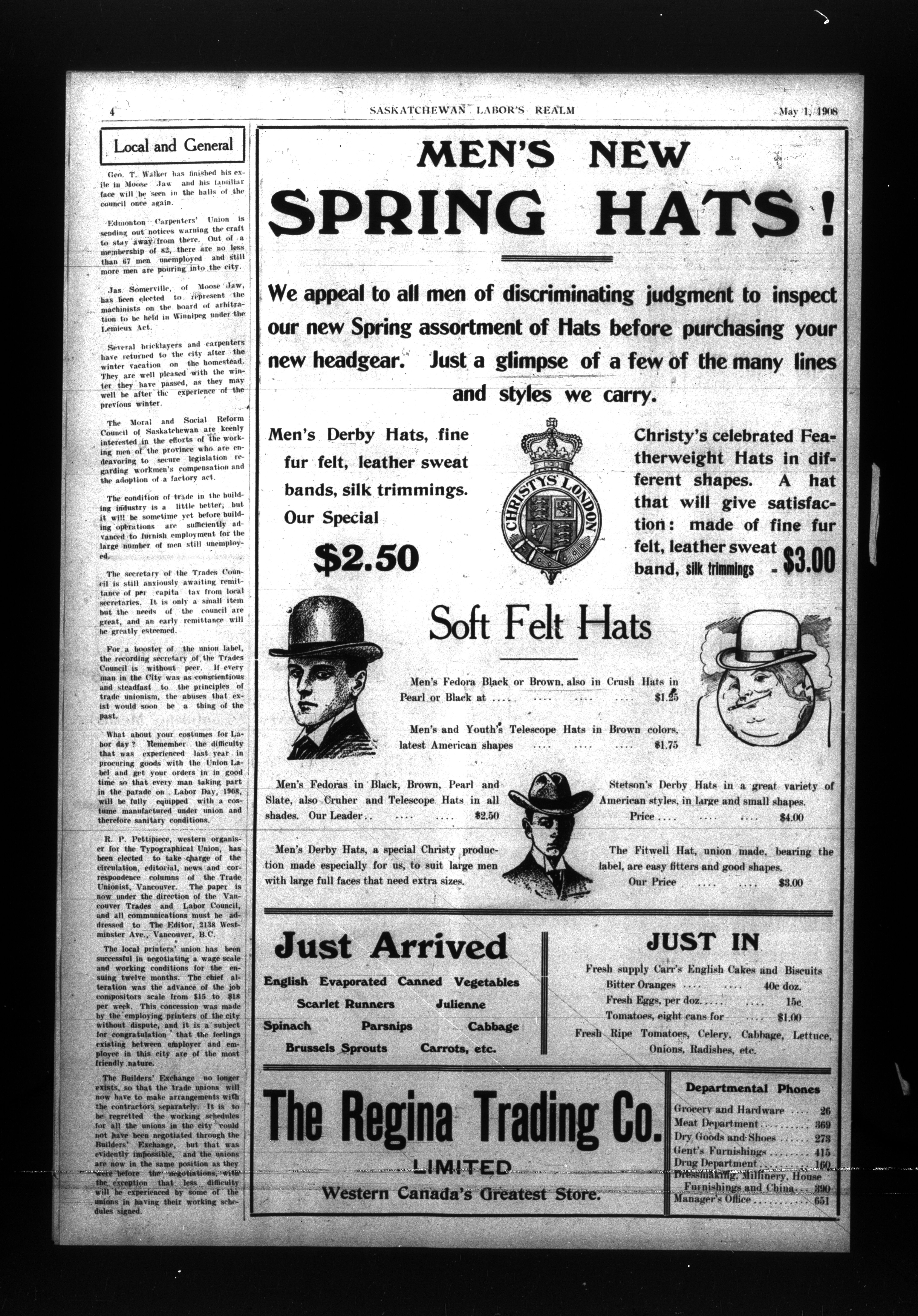 Saskatchewan Labor's Realm. : Saskatchewan Labor's Realm : Vol. 1, No. 39 (May 1, 1908)