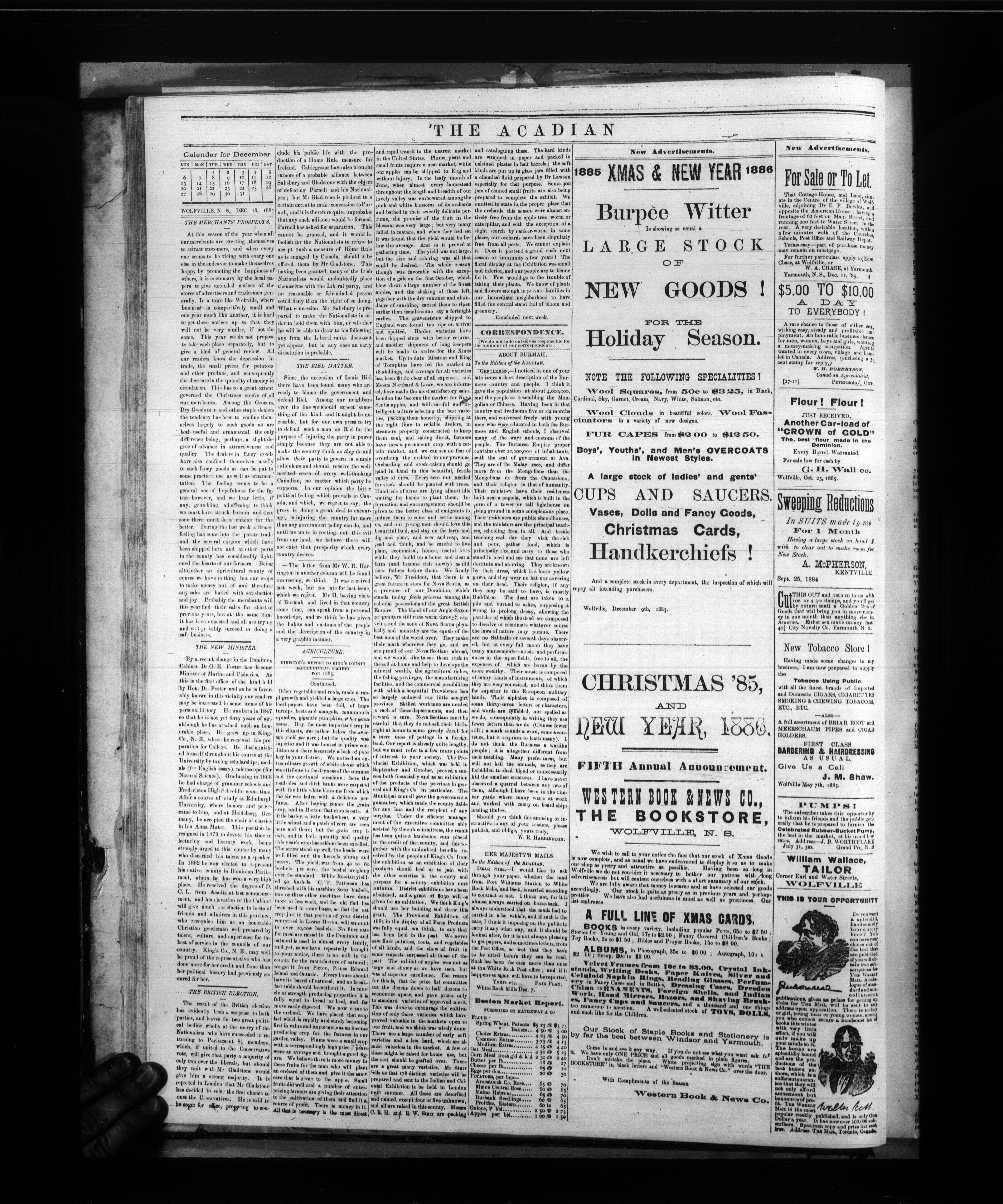 The Acadian : Vol V, No. 18 (December 18, 1885)