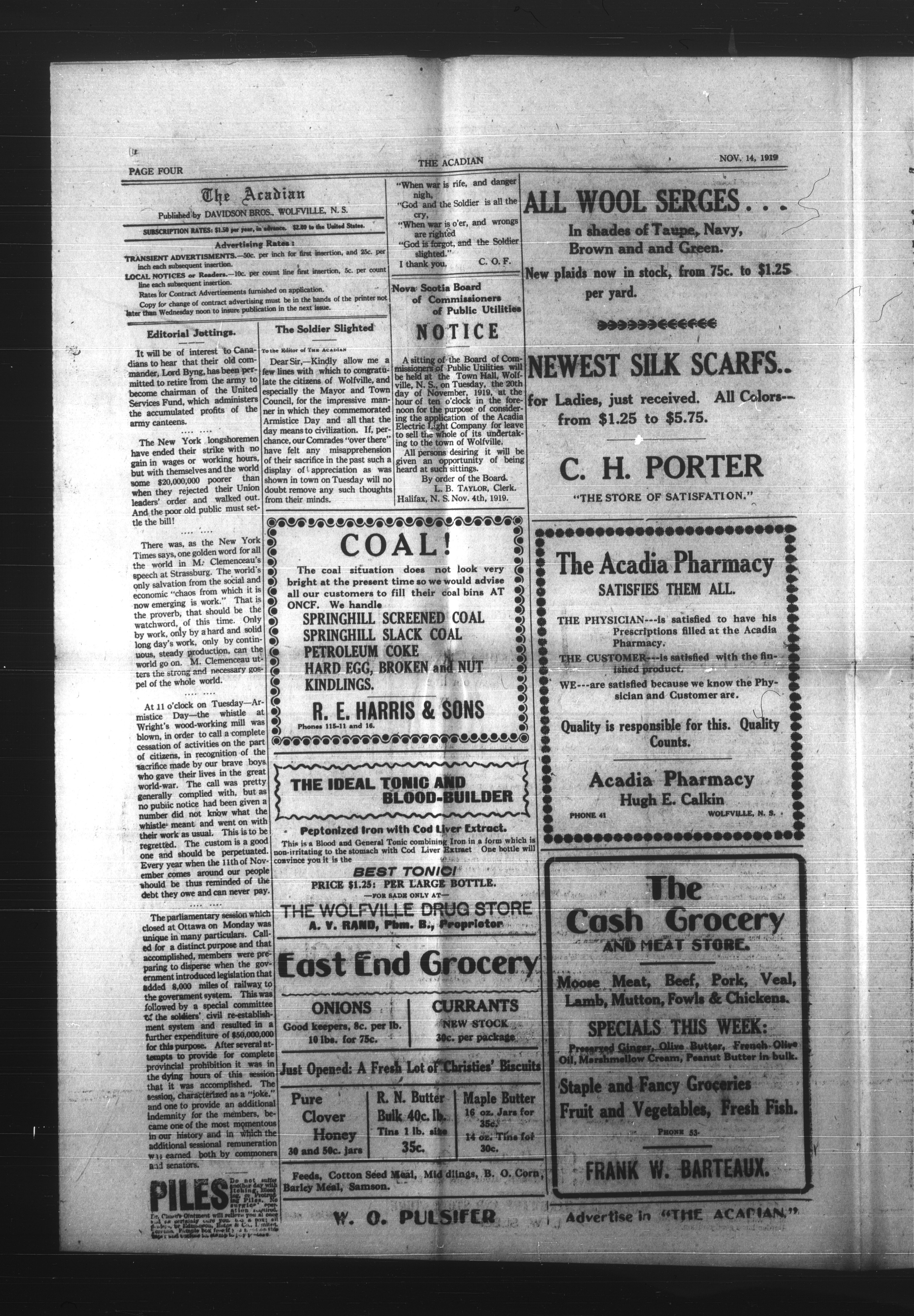 The Acadian : Vol. XXXIX, No. 8 (November 14, 1919)