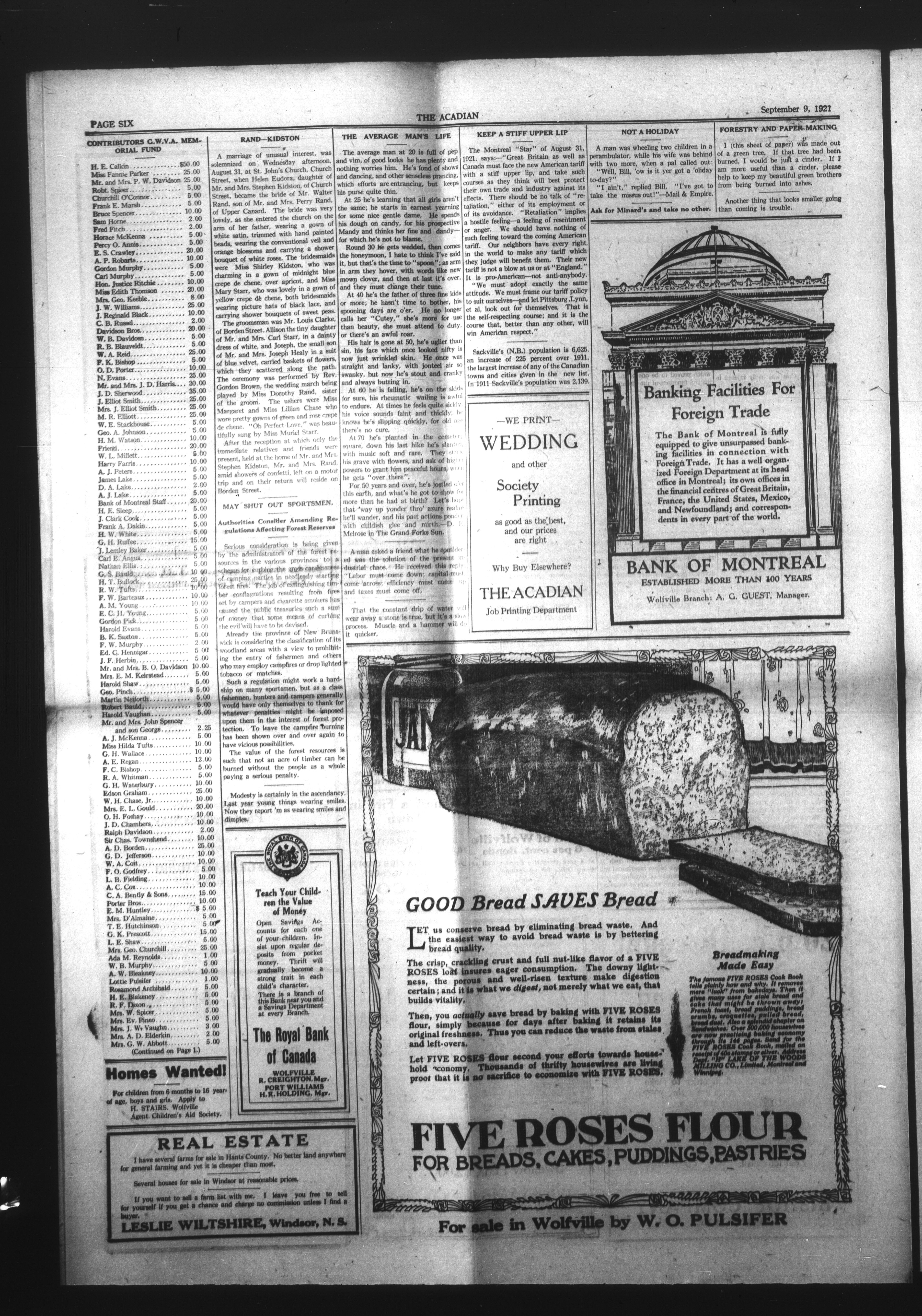 The Acadian : Vol. XL, No. 47 [i.e. 51] (September 9, 1921)
