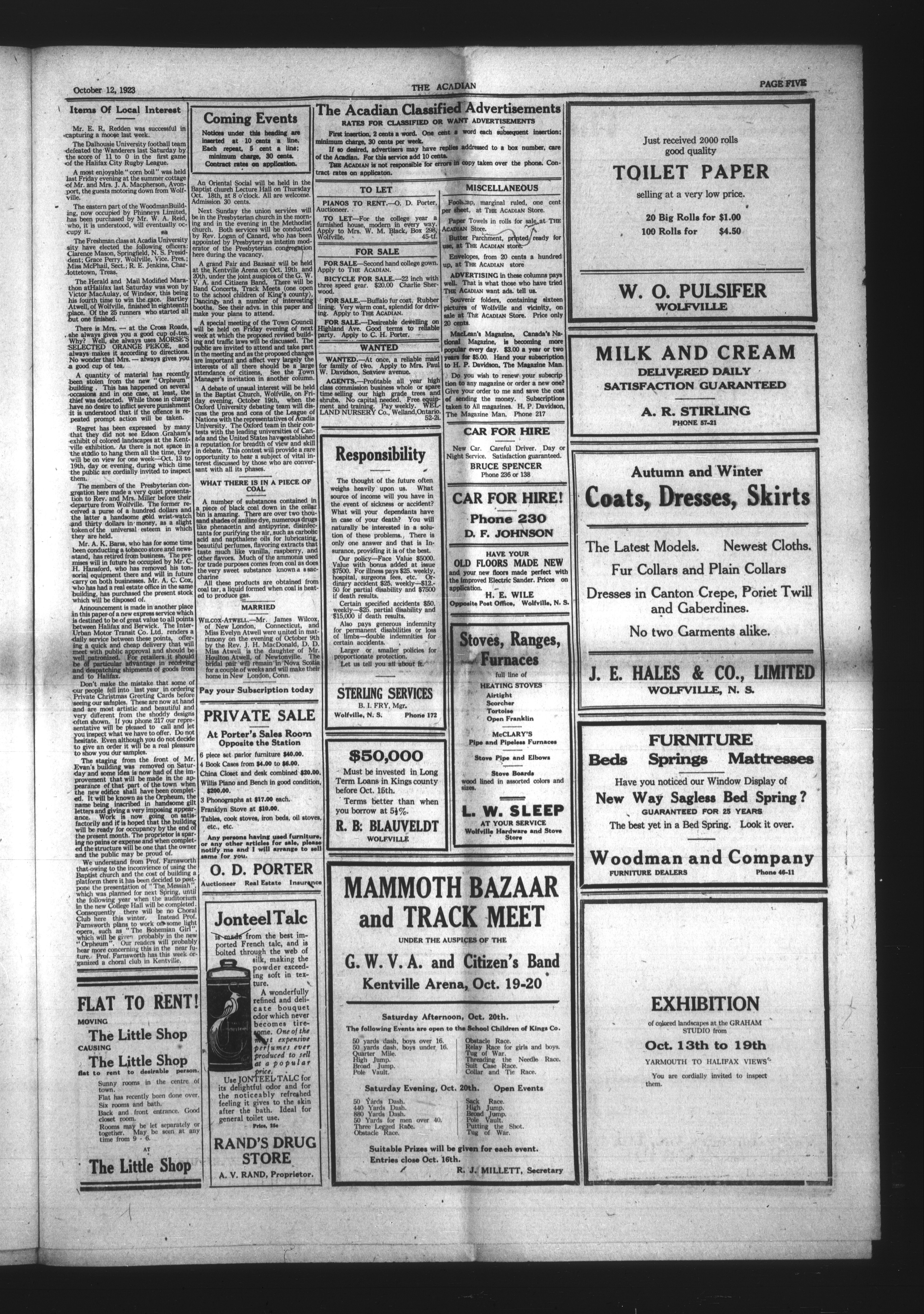 The Acadian : Vol. XLII, No. 52 (October 12, 1923)