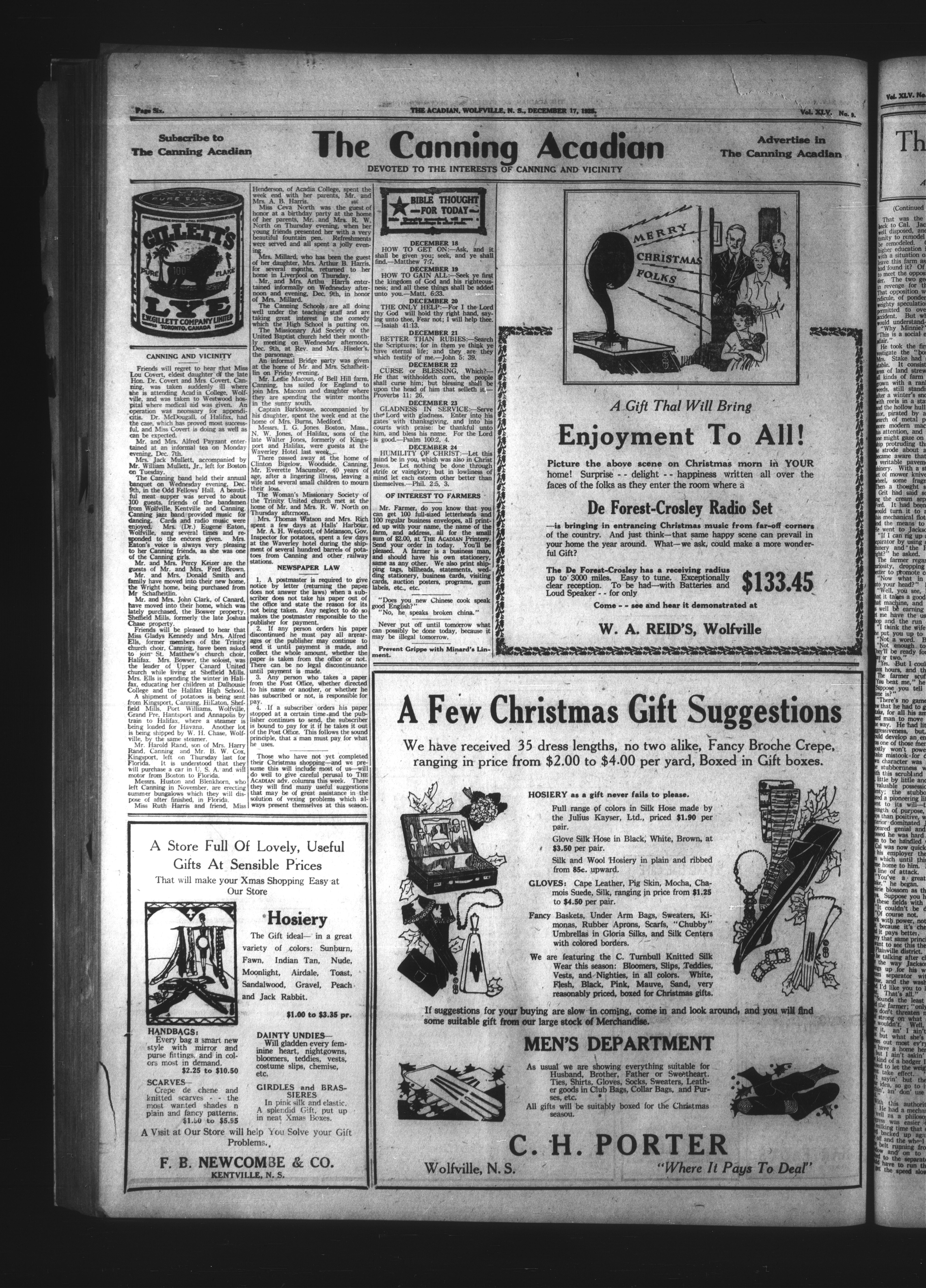 The Acadian : Vol. XLV, No. 9 (December 17, 1925)