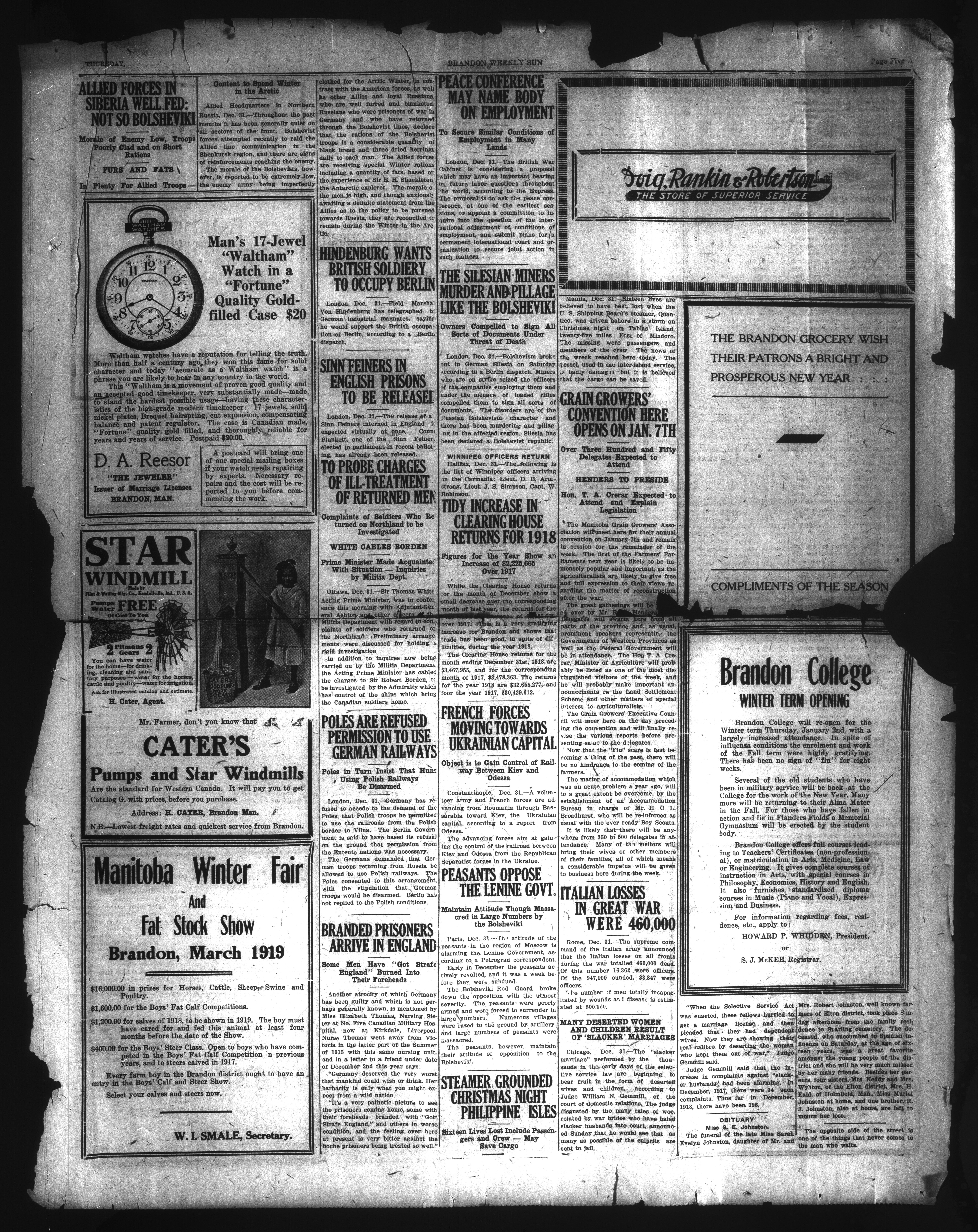 The Brandon Weekly Sun. : January 2, 1919-December 25, 1919