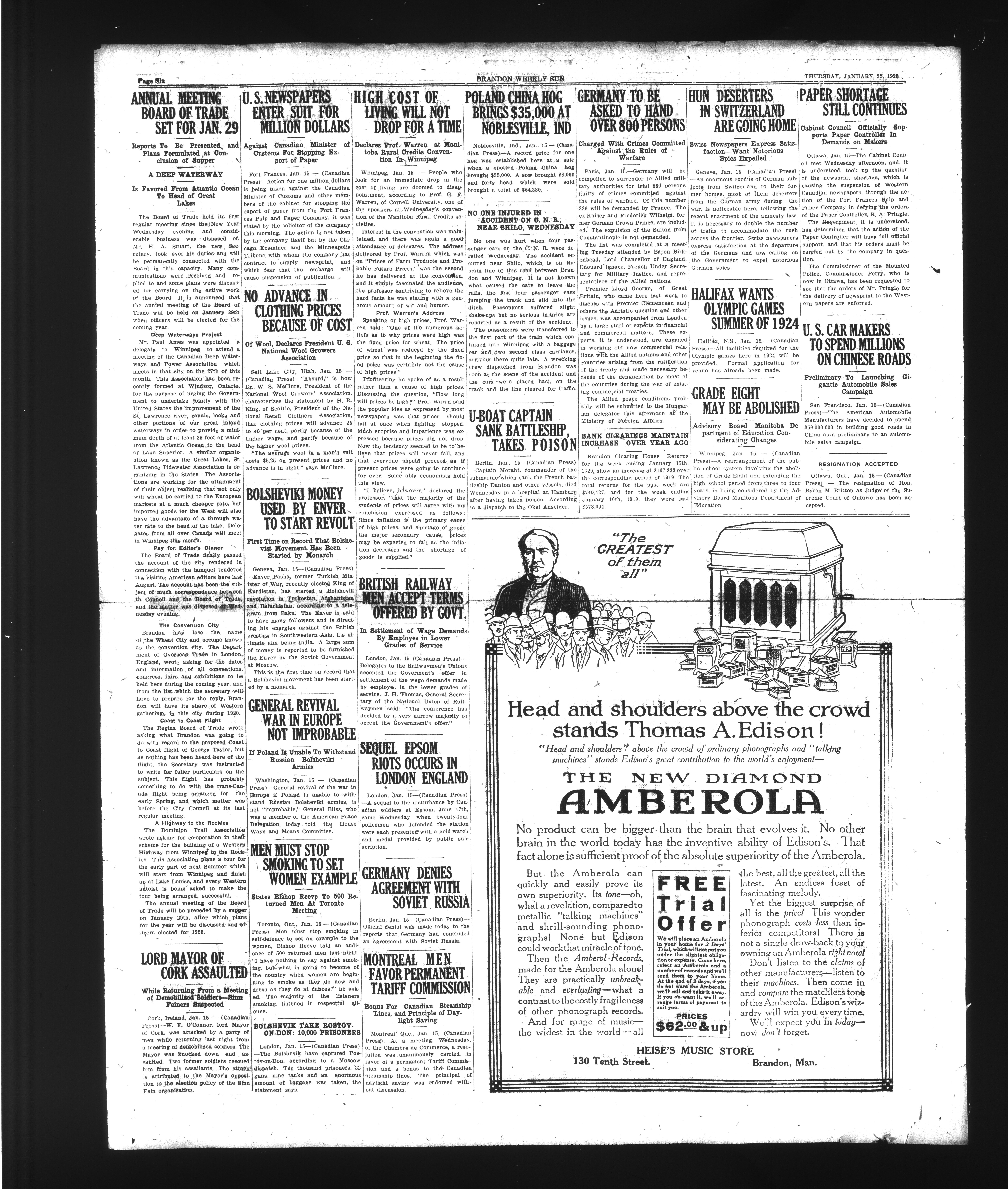 The Brandon Weekly Sun. : January 1, 1920-December 16, 1920