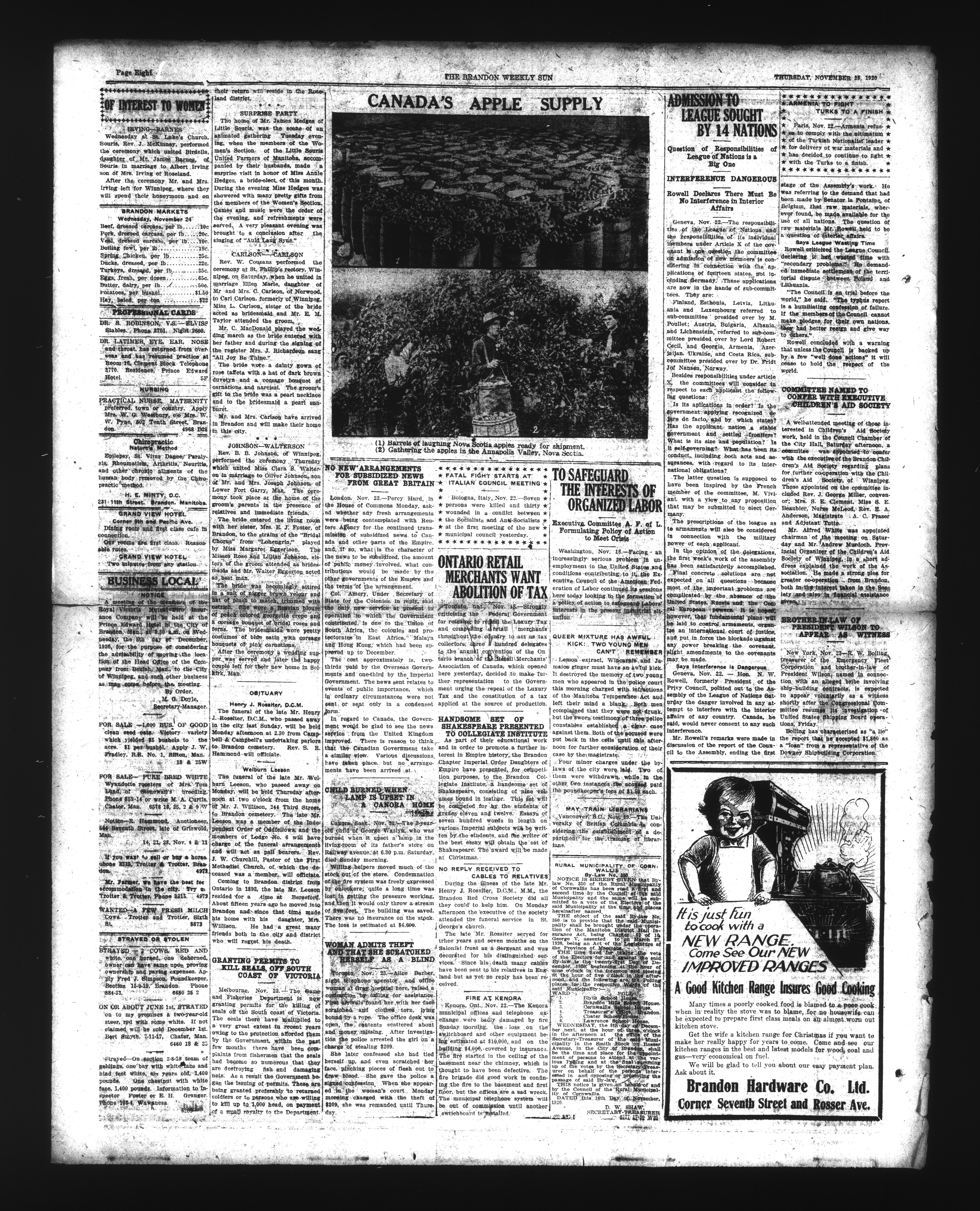 The Brandon Weekly Sun. : January 1, 1920-December 16, 1920