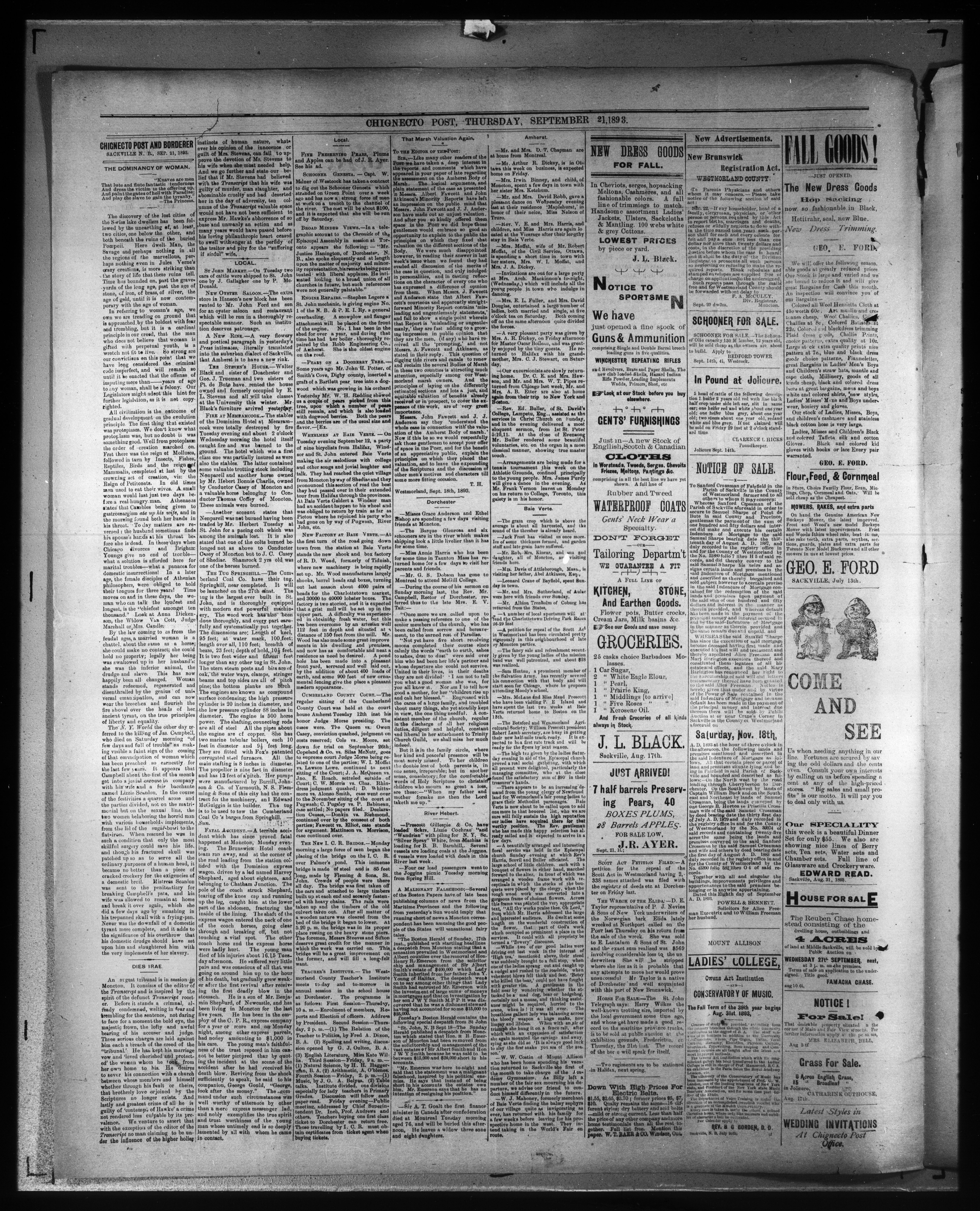 - Chignecto Post : Vol. 24, No. 10 (September 21, 1893)