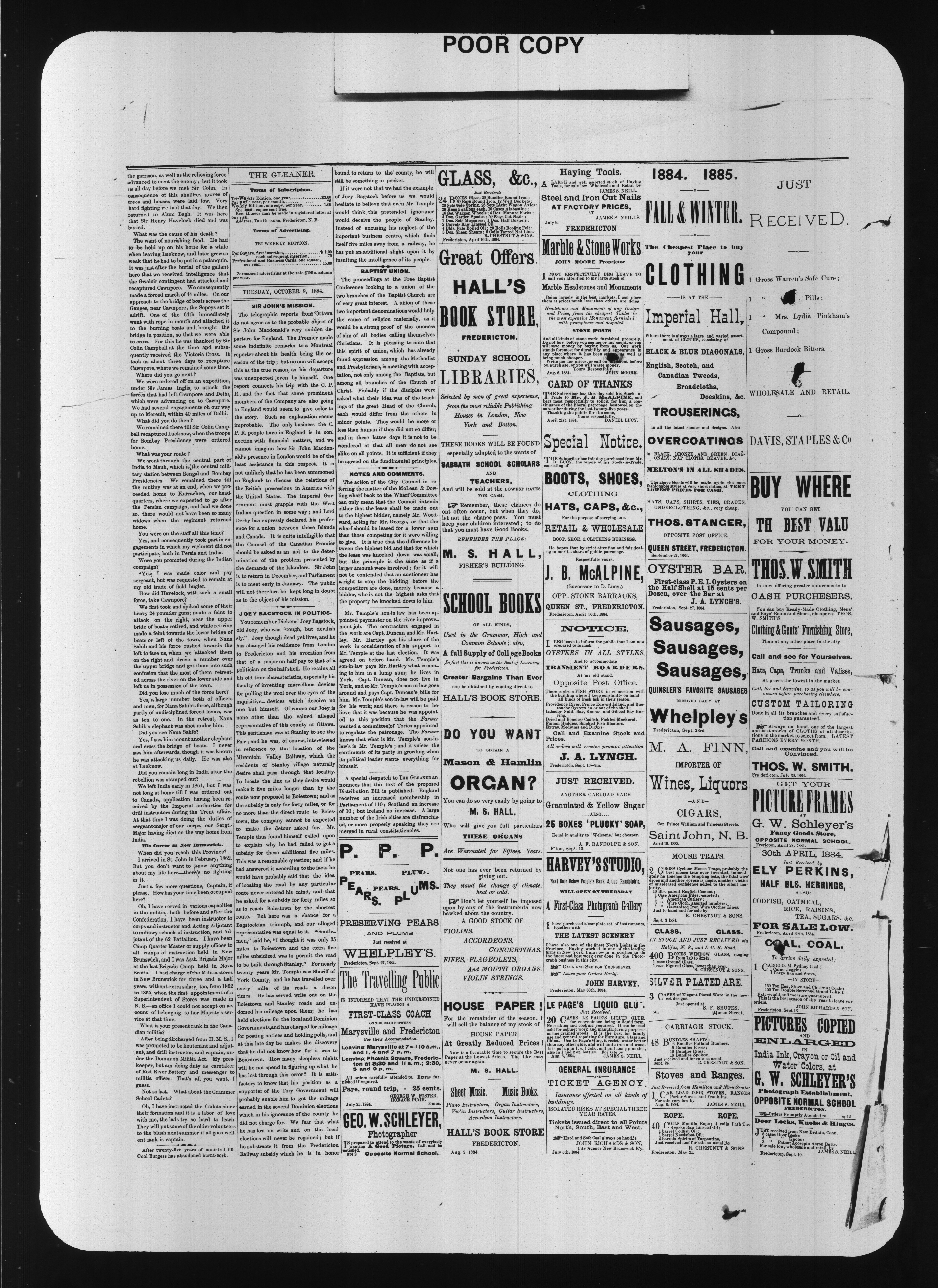 Fredericton, N.B.: Jas. H. Crockeet, Proprietor, [1884]; 4 images with full-text search