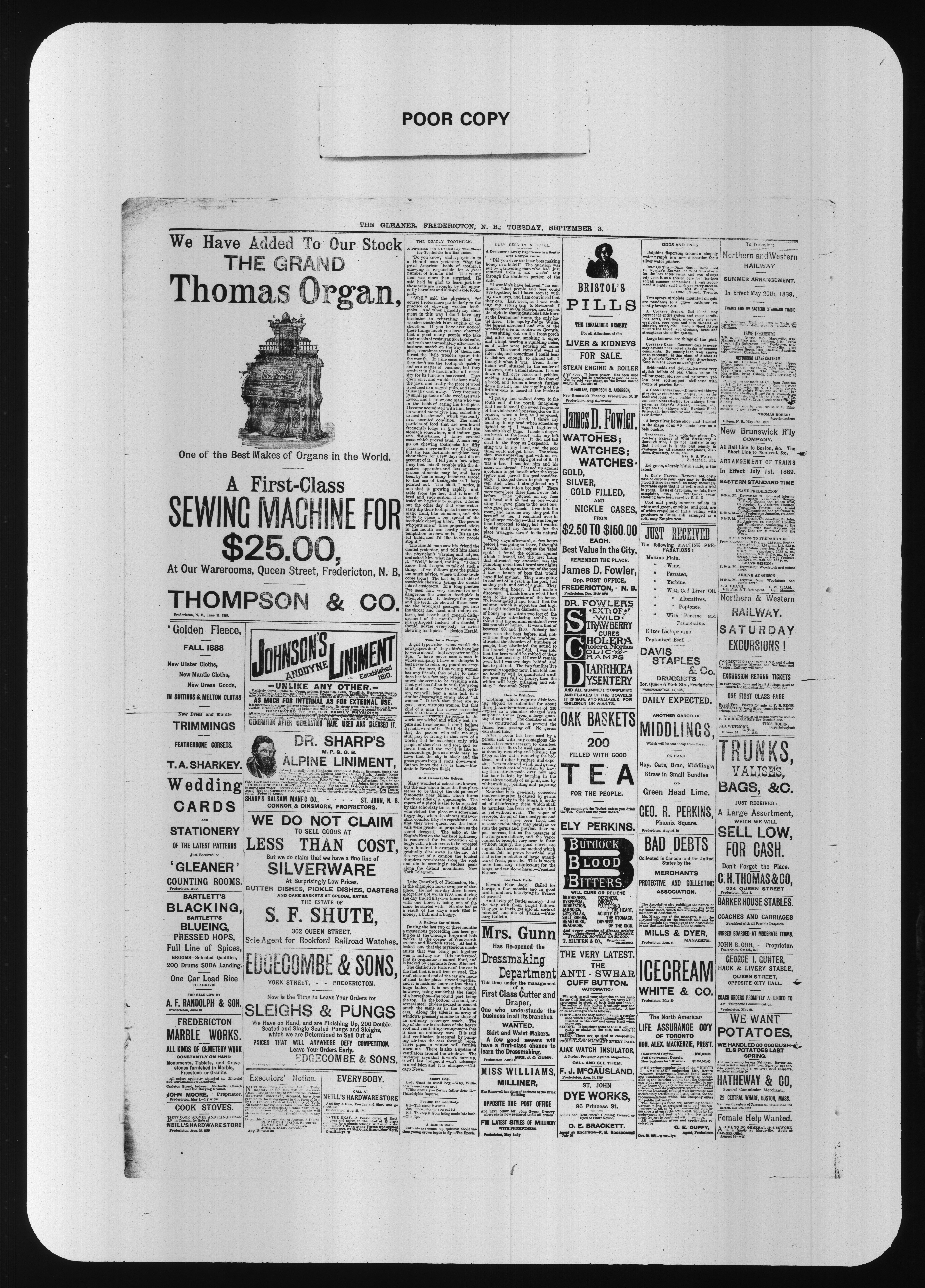 - Fredericton, N.B.: Jas. H. Crockeet, Proprietor, [1889]