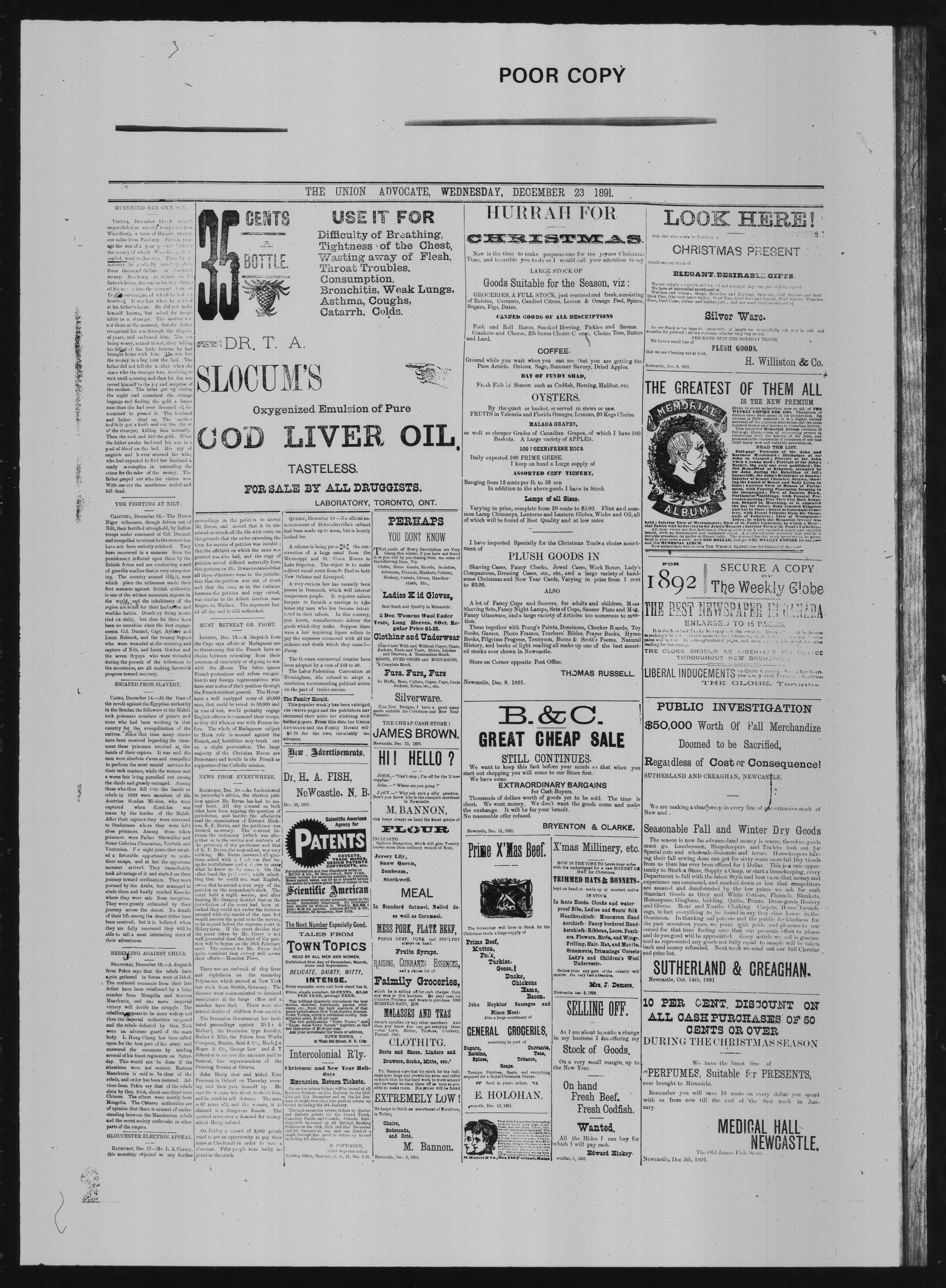 The Union Advocate. : The Union Advocate : Vol. XXV, No. 11 (December 23, 1891)