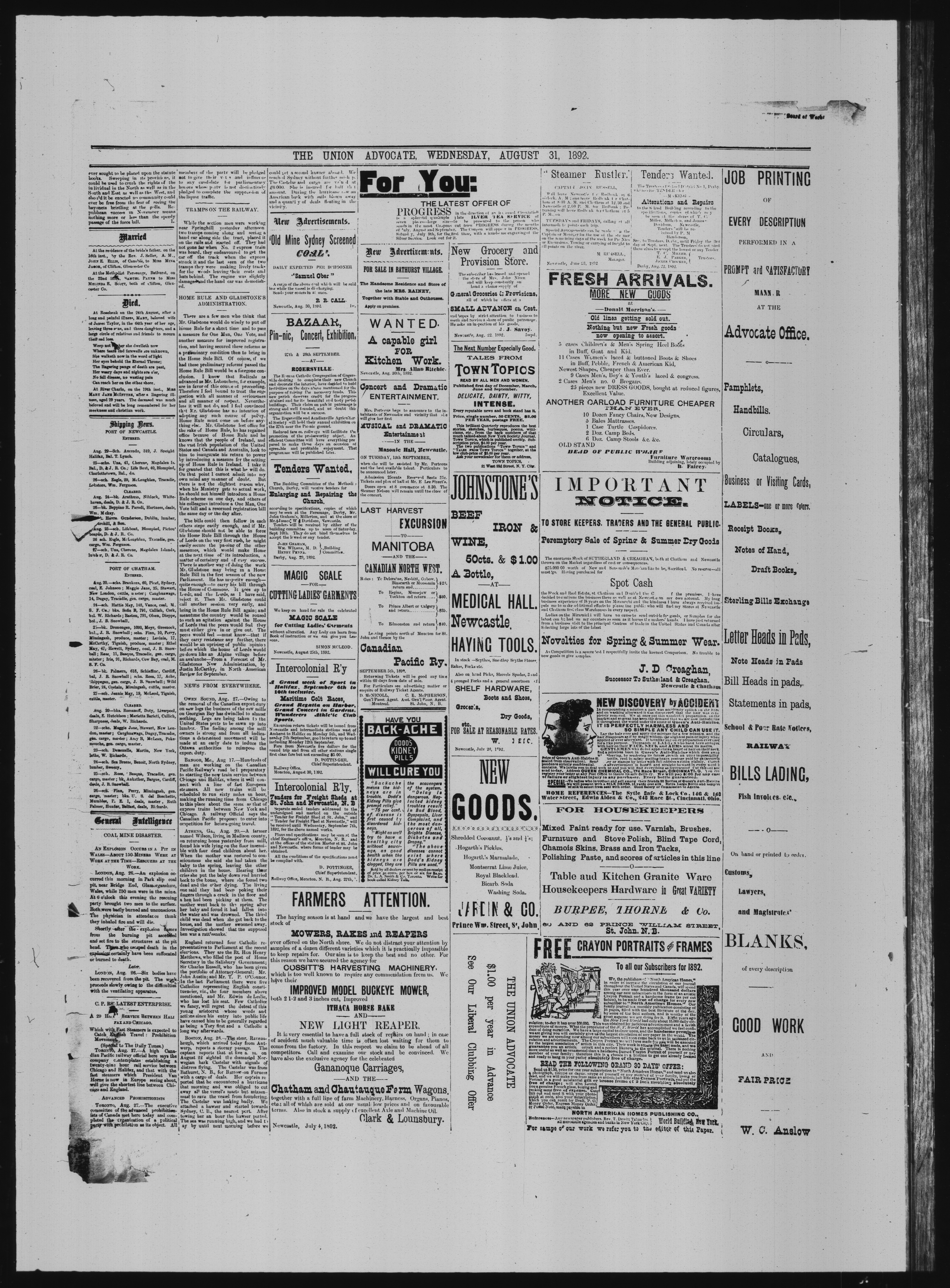 - The Union Advocate : Vol. XXV, No. 47 (August 31, 1892)