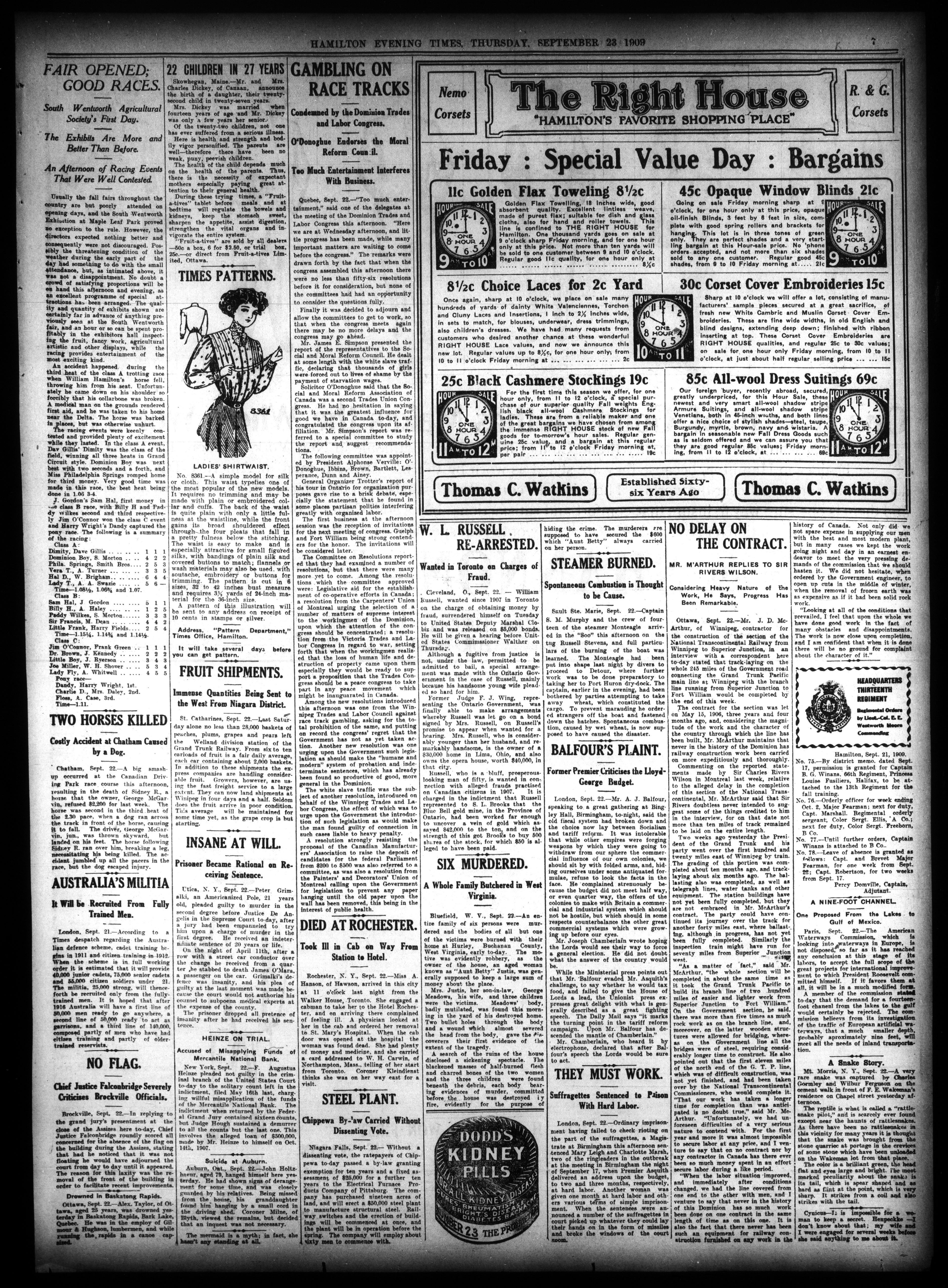 Hamilton Times. : The Hamilton Times : Vol. LII, No. 225 (September 23, 1909)