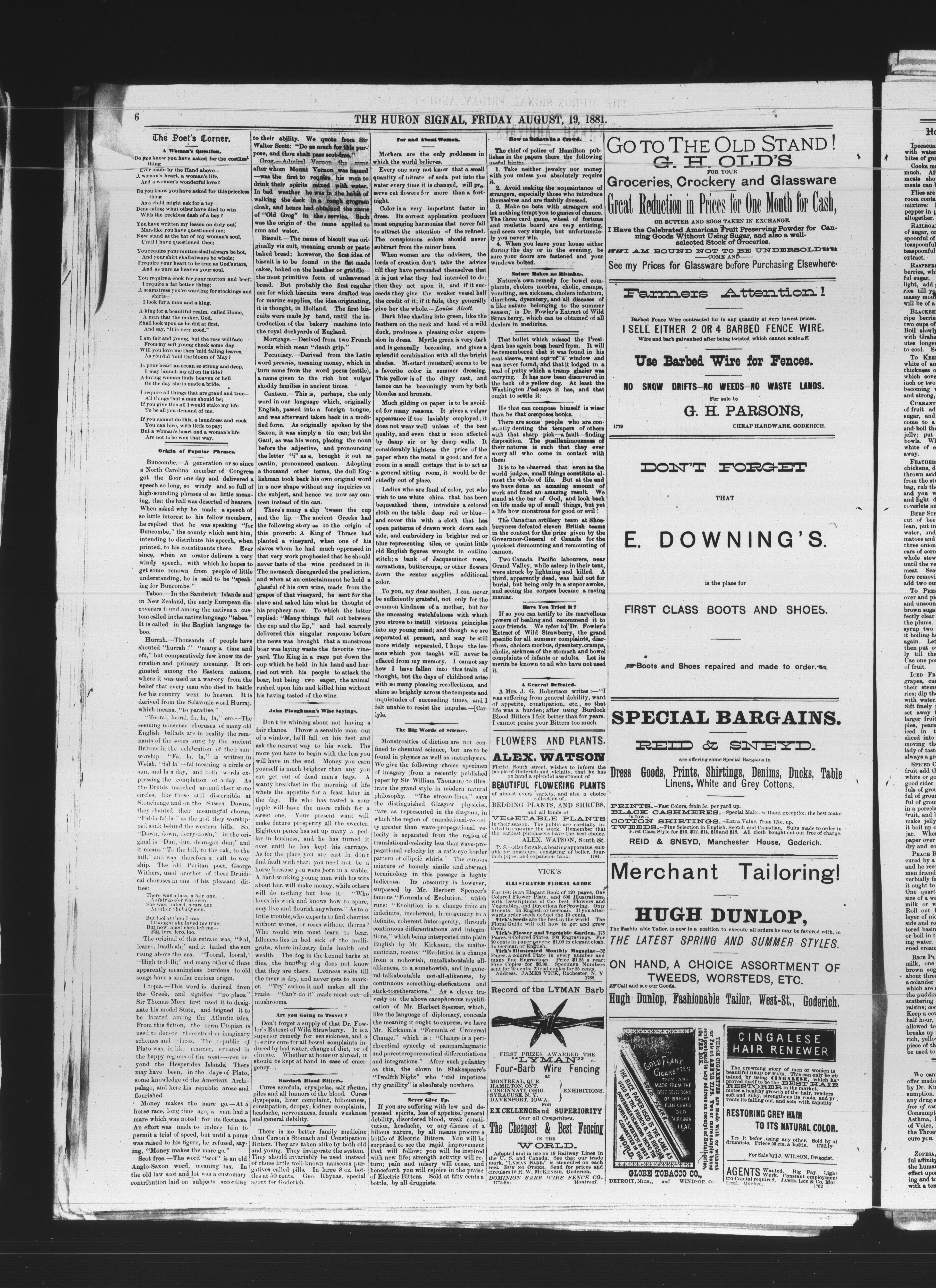 Huron signal : Thirty-fourth Year, Whole Number 1800 (Aug. 19, 1881)