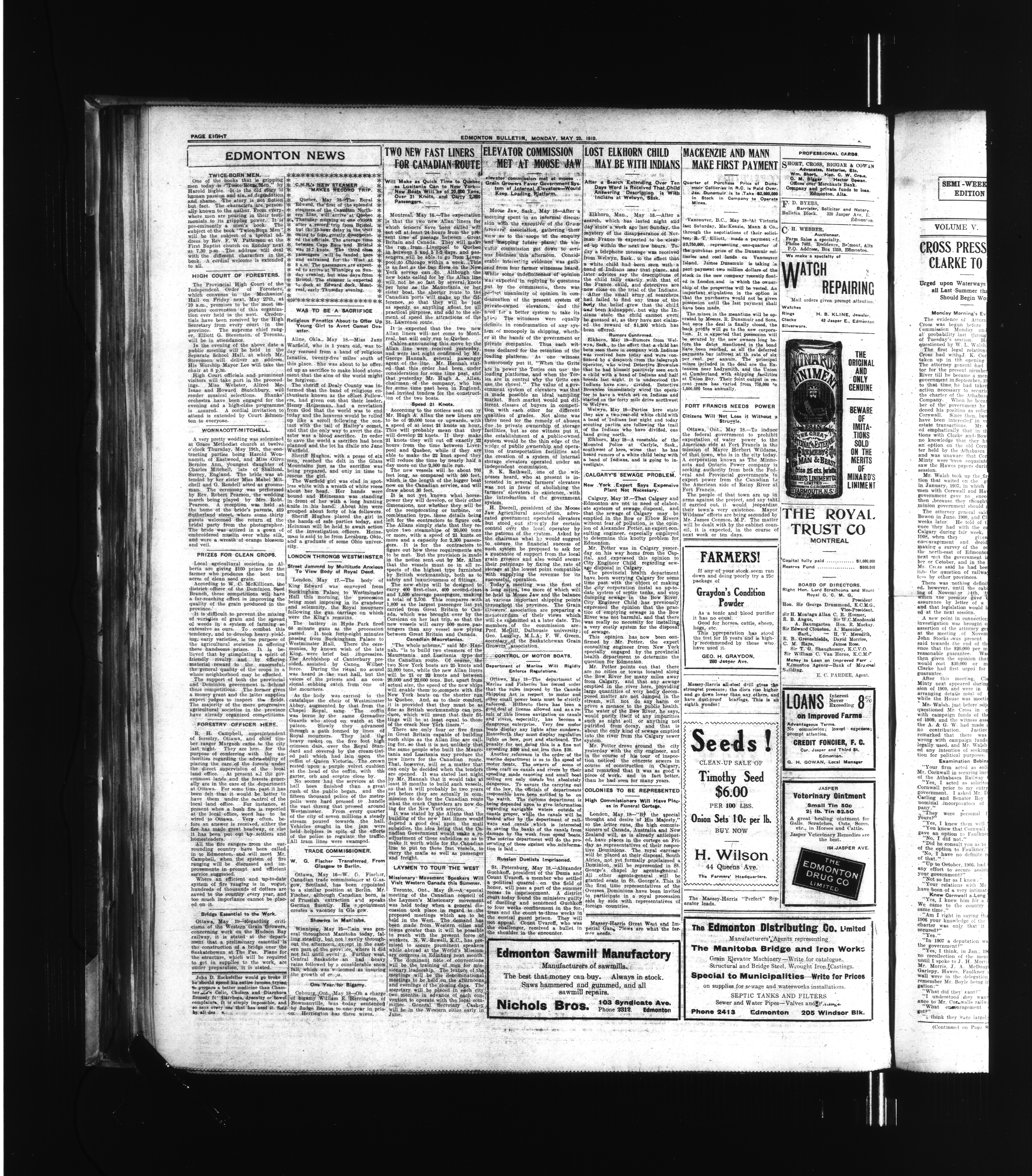 Edmonton Bulletin : Volume V, Number 495 (May 23, 1910)