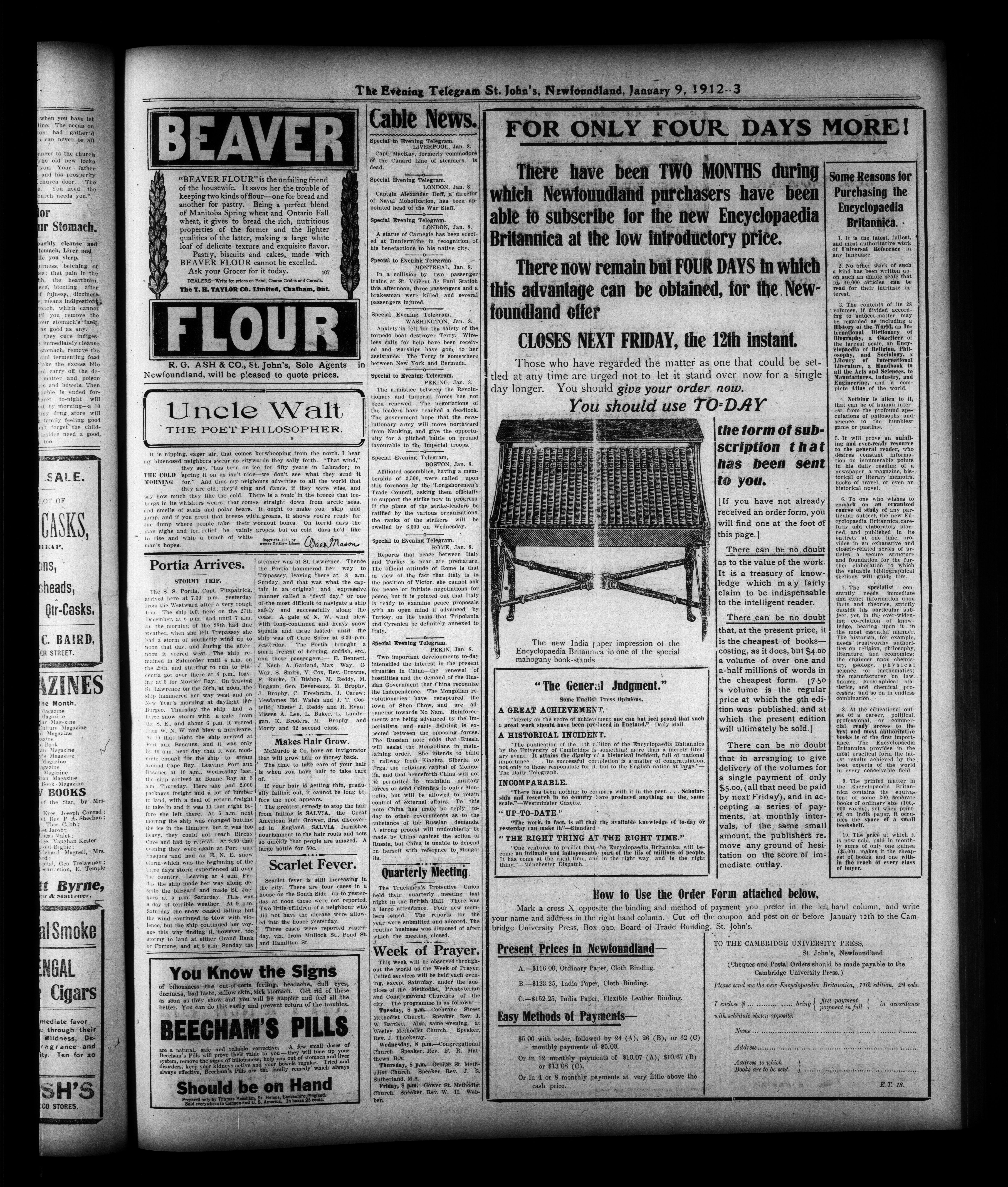 The Evening Telegram : Volume XXXIV, No. 7 (January 9, 1912)