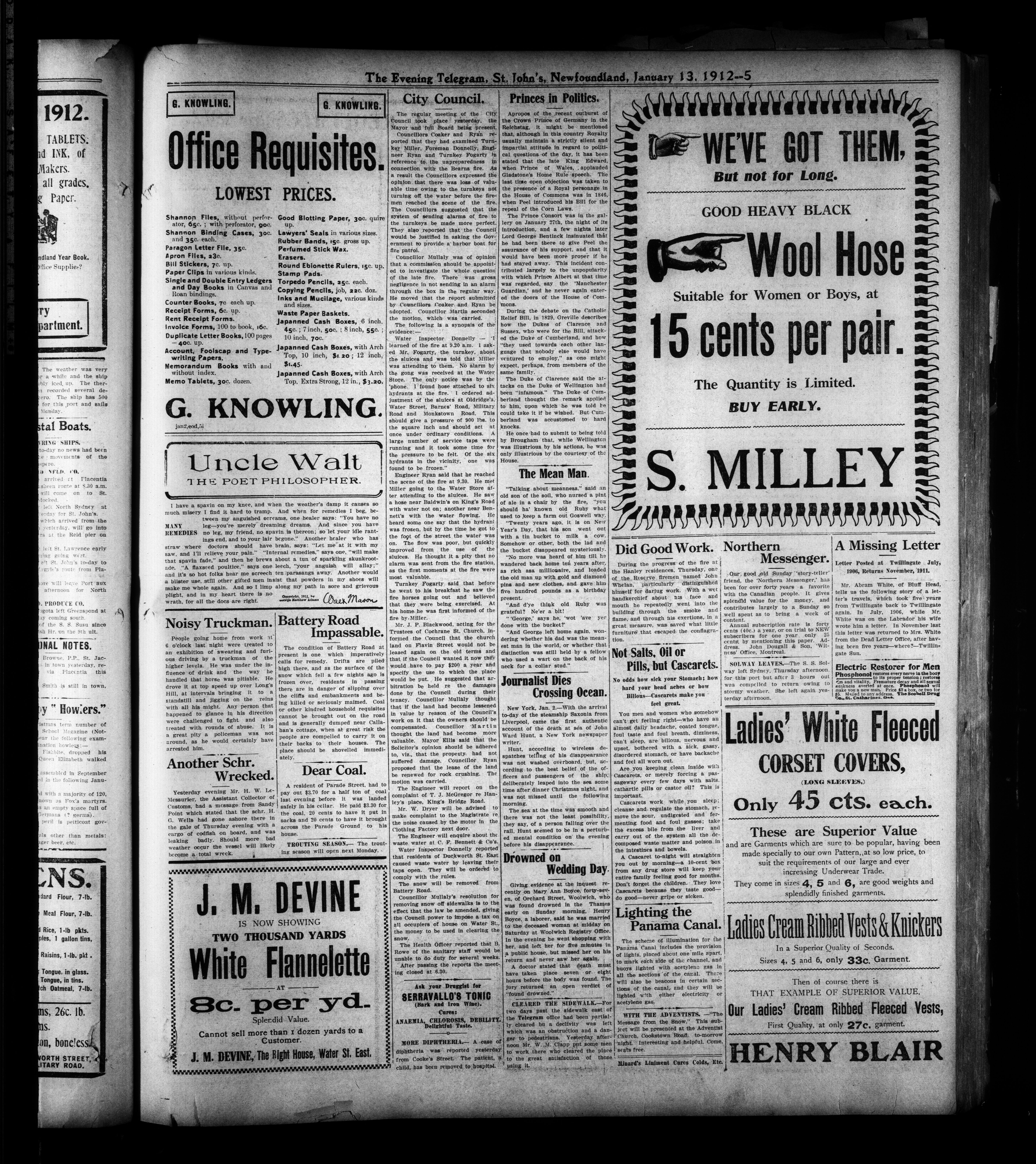 The Evening Telegram : Volume XXXIV, No. 11 (January 13, 1912)
