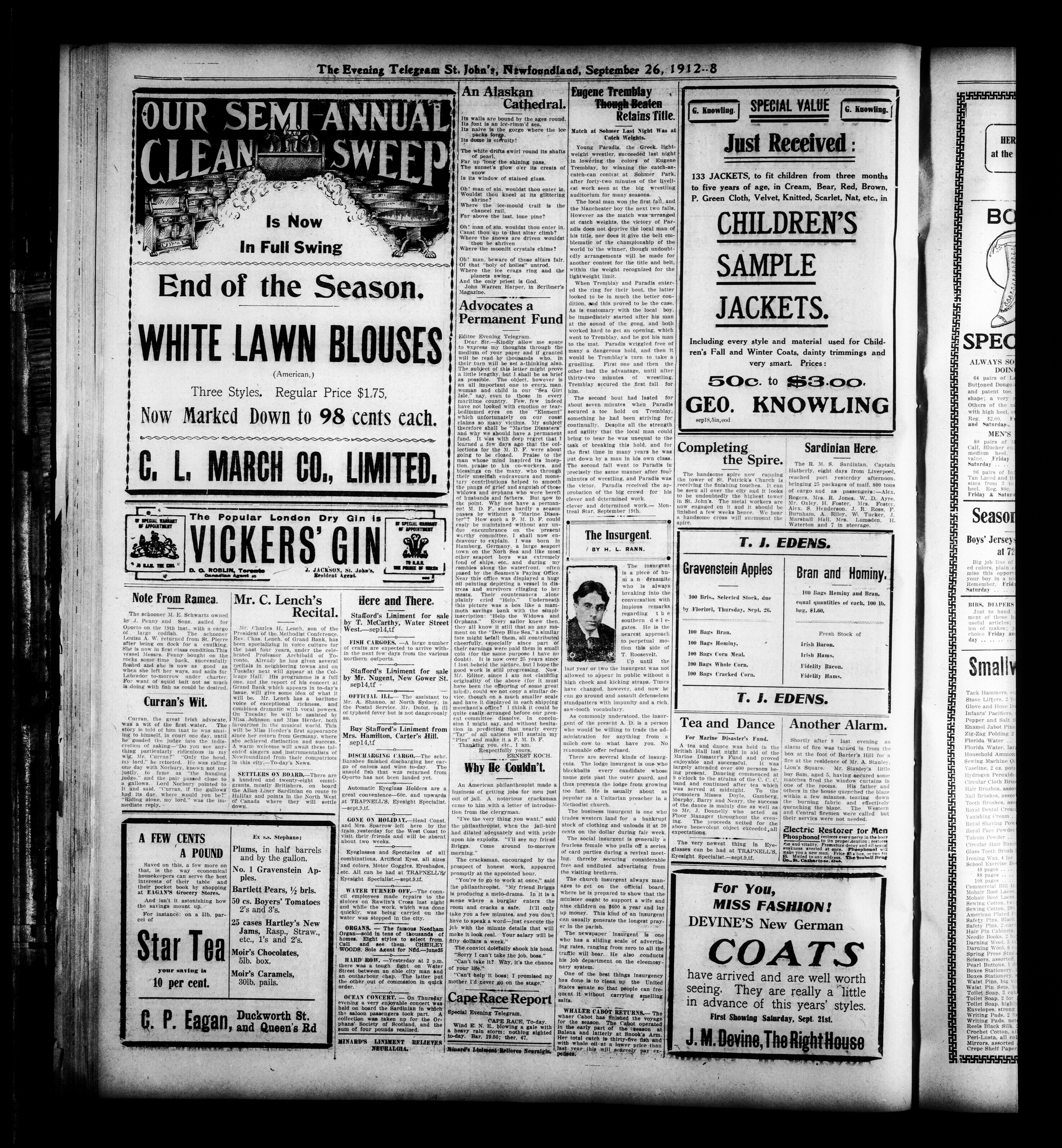 The Evening Telegram : Volume XXXIV, No. 223 (September 26, 1912)
