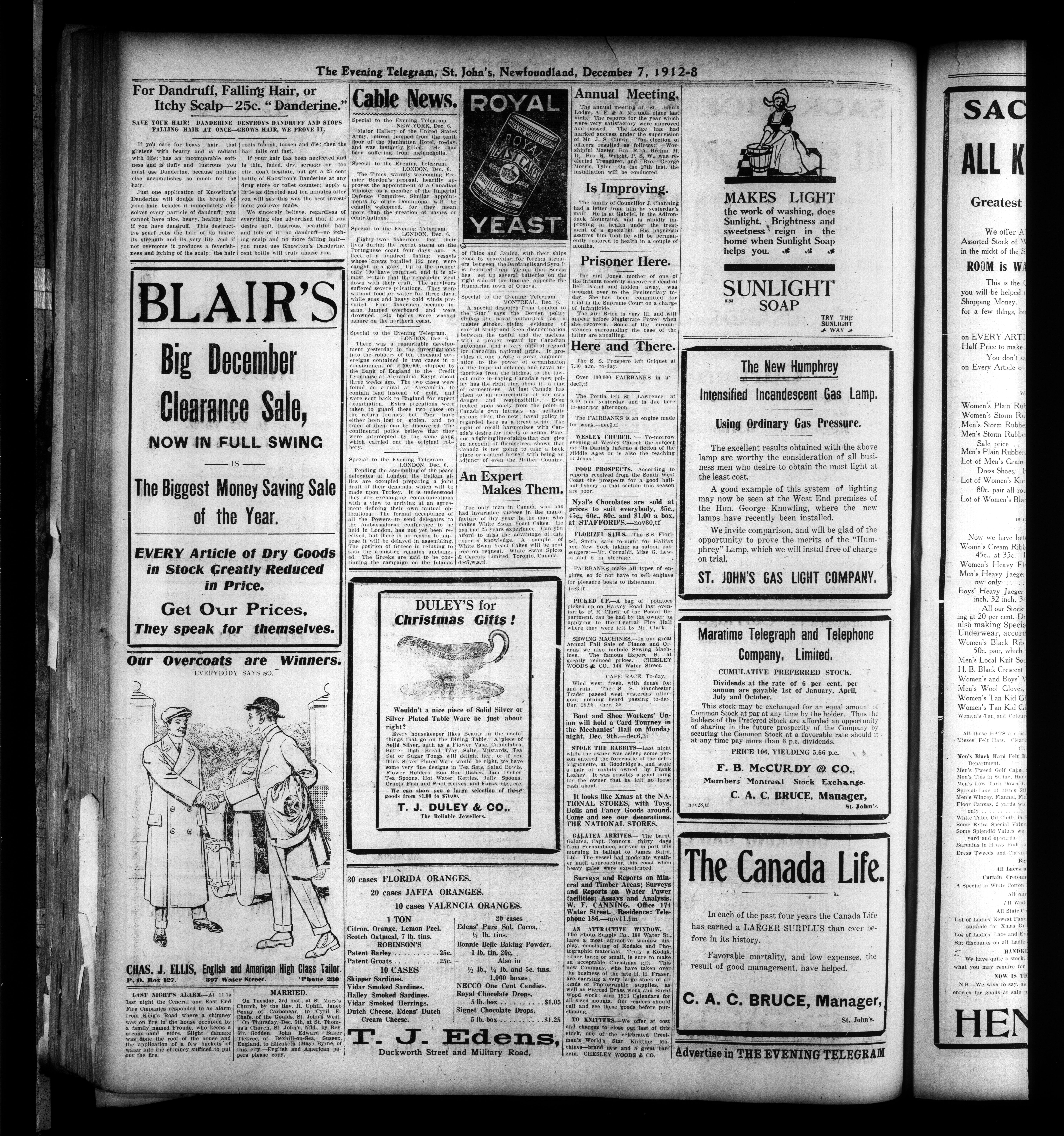 The Evening Telegram : Volume XXXIV, No. 285 (December 7, 1912)