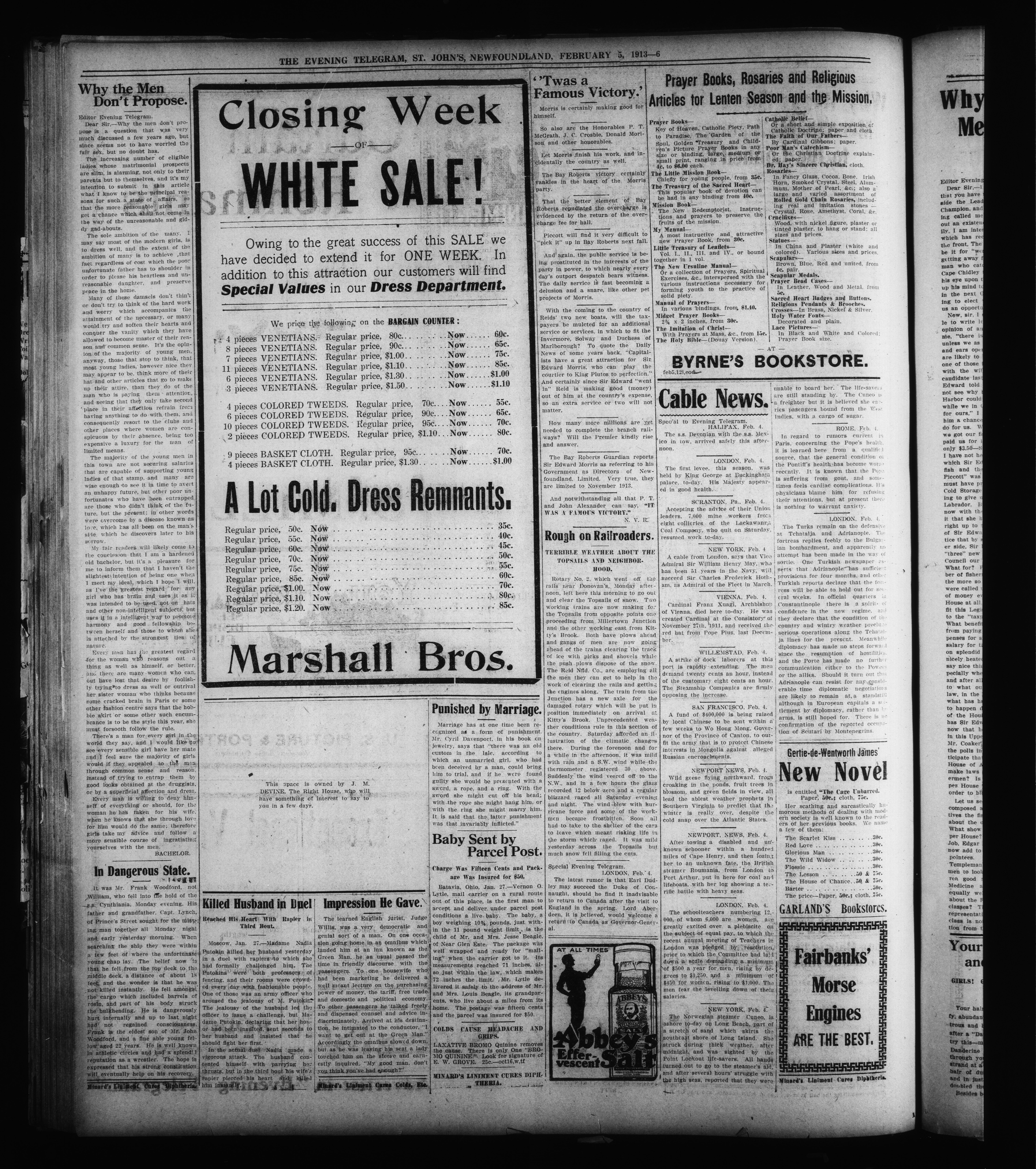 The Evening Telegram : Volume XXXV, Number 30 (February 5, 1913)