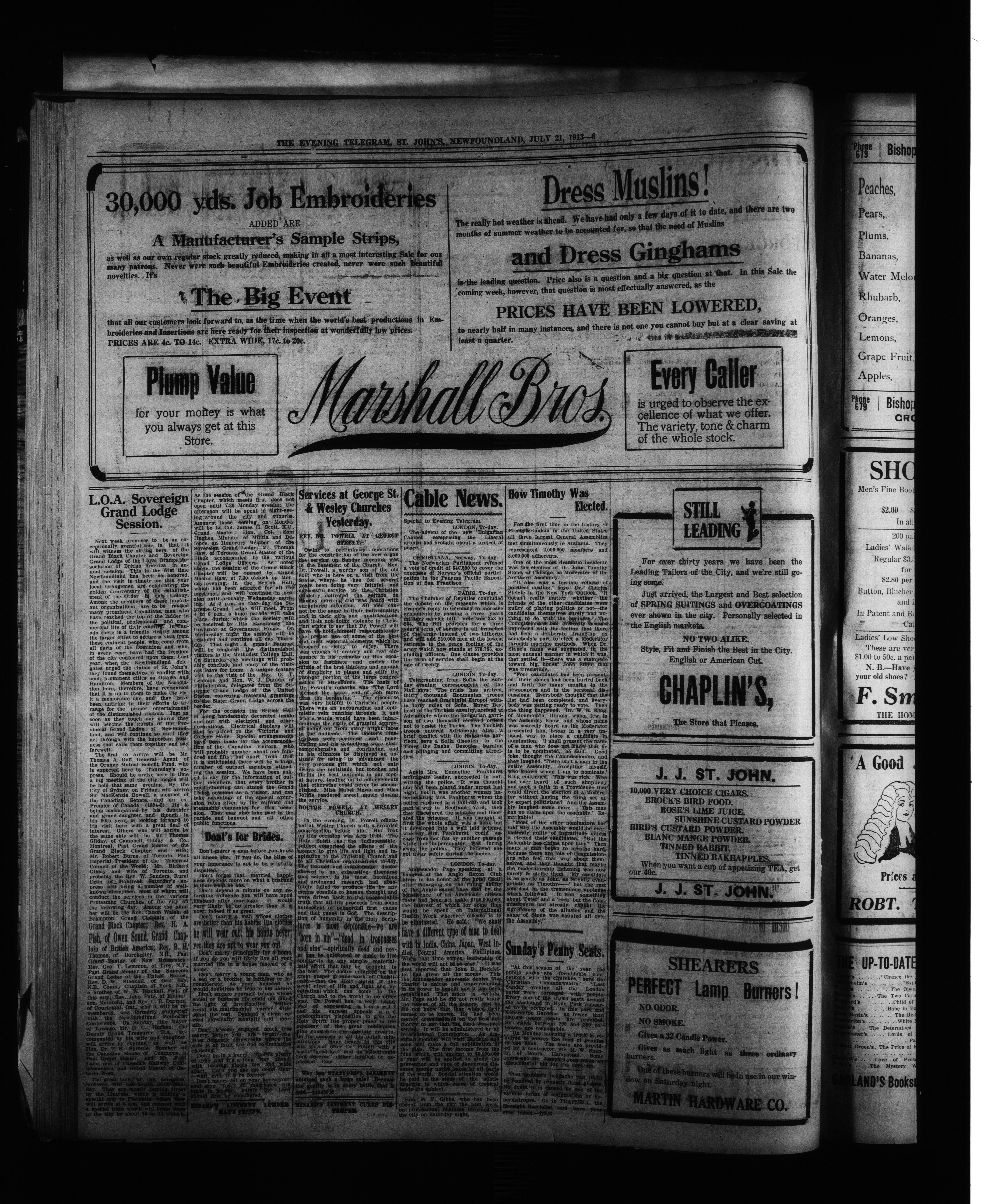 The Evening Telegram : Volume XXXV, Number 168 (July 21, 1913)