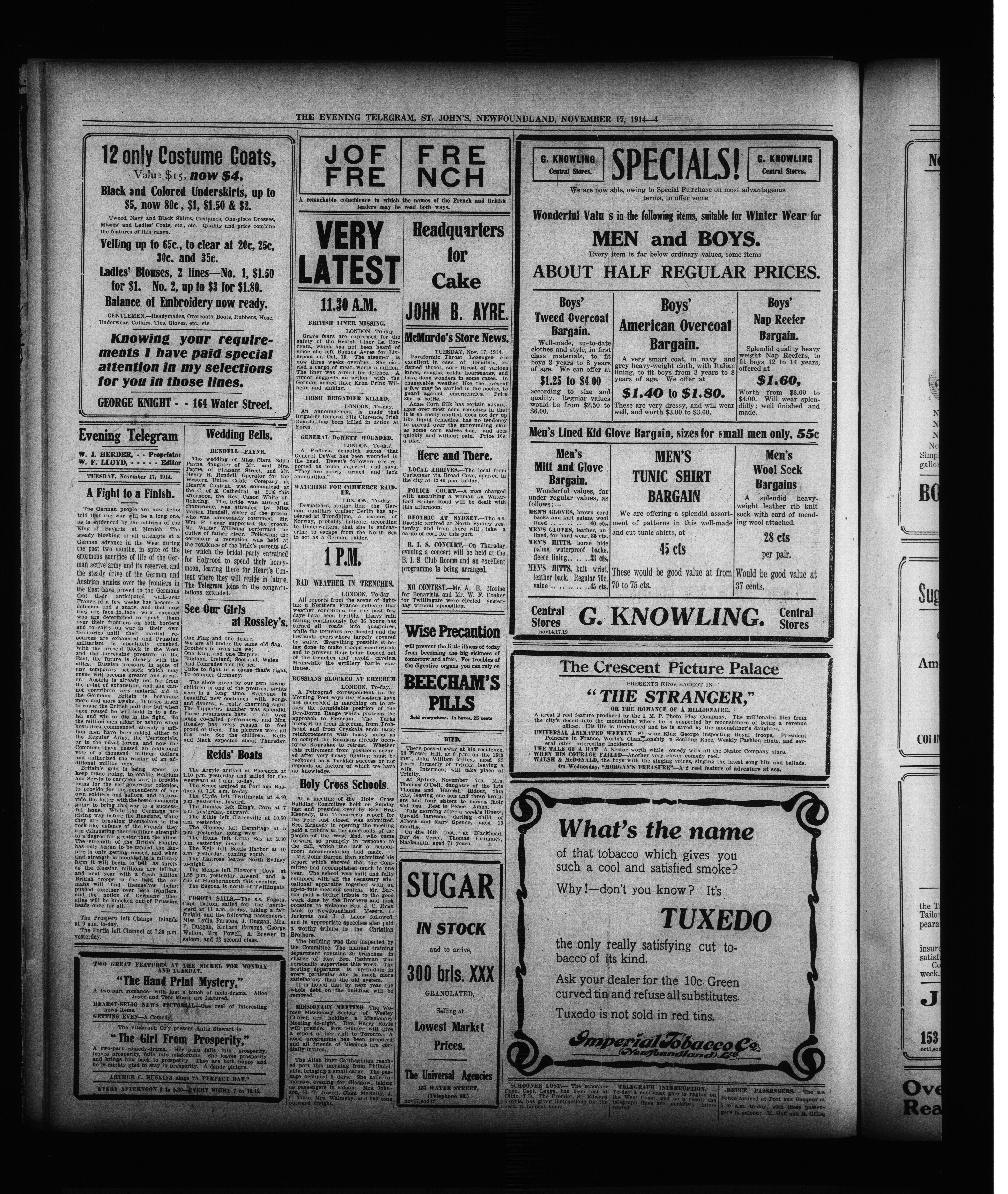 The Evening Telegram : Volume XXXVI, Number 267 (November 17, 1914)