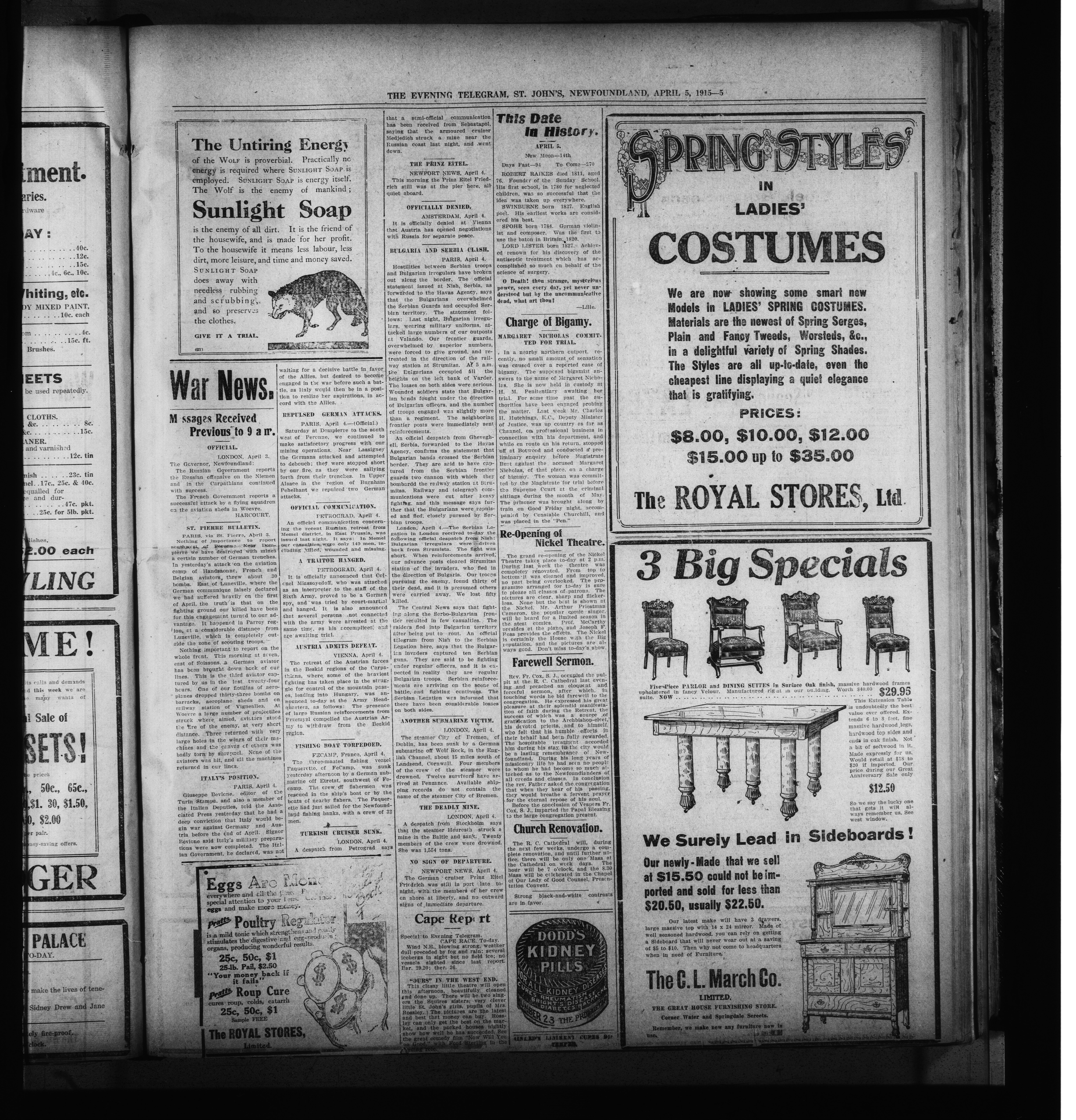 The Evening Telegram : Volume XXXVII, Number 77 (April 5, 1915)