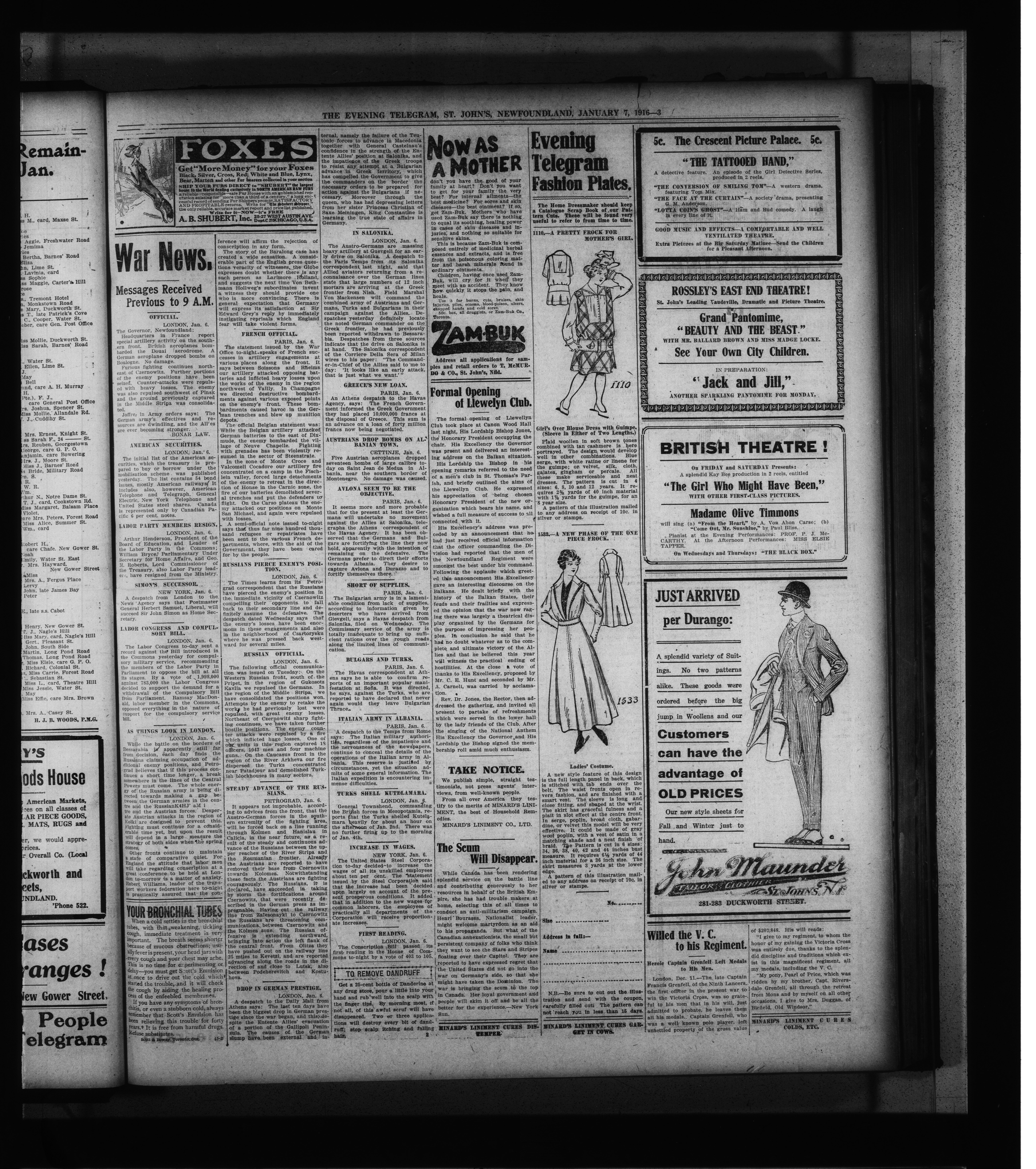 The Evening Telegram : Volume XXXVIII, Number 5 (January 7, 1916)
