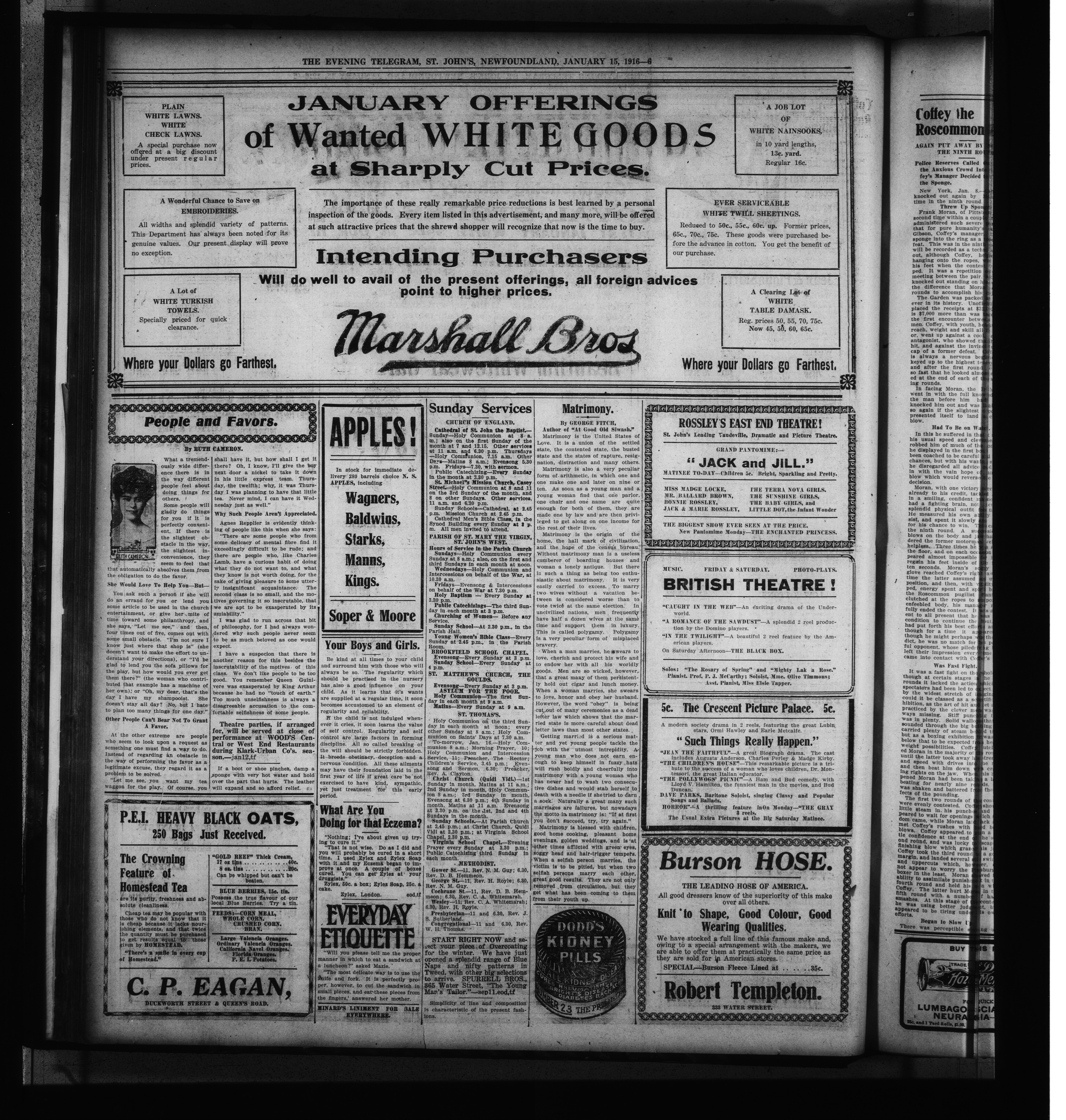 The Evening Telegram : Volume XXXVIII, Number 12 (January 15, 1916)