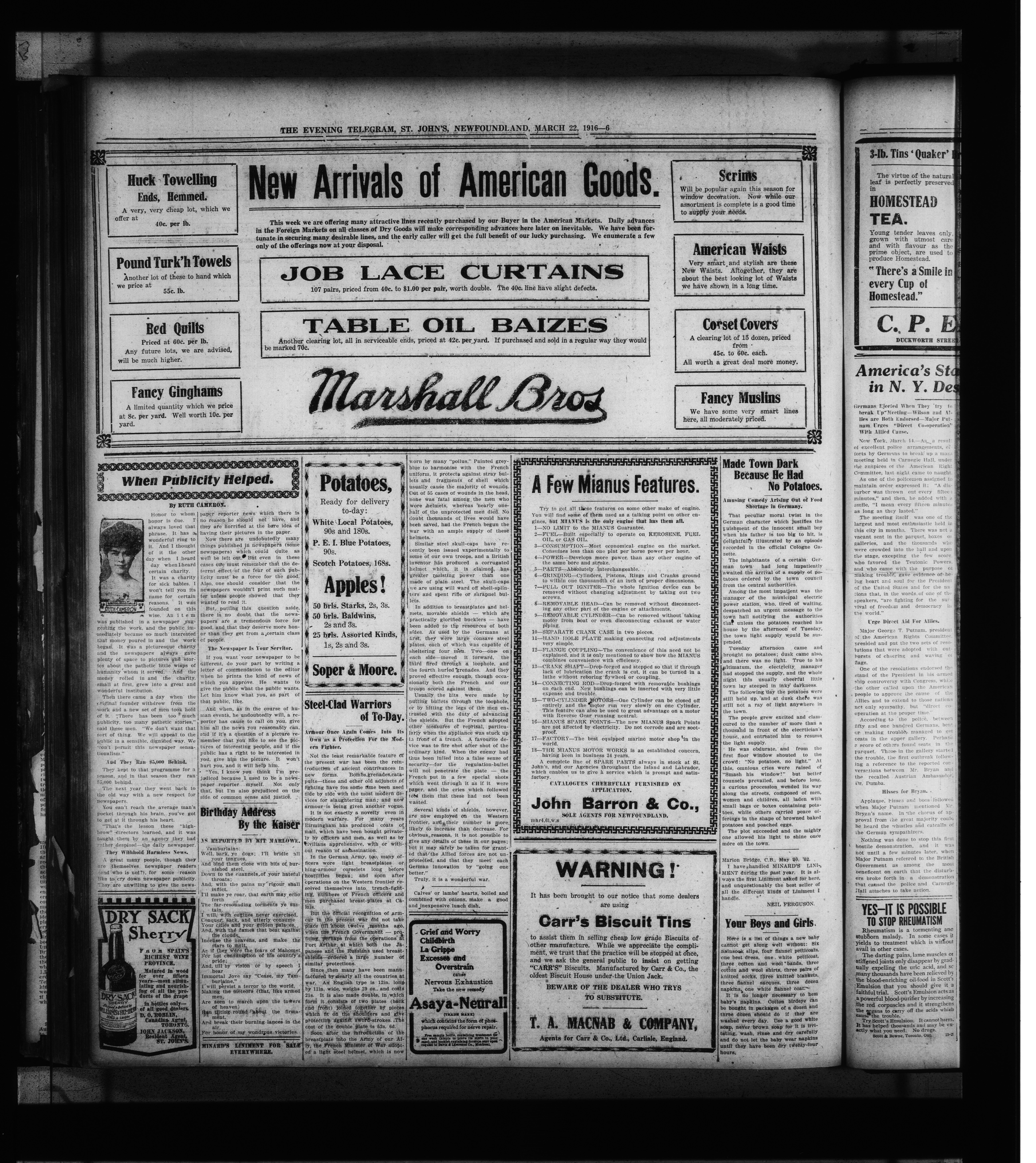 The Evening Telegram : Volume XXXVIII, Number 67 (March 22, 1916)