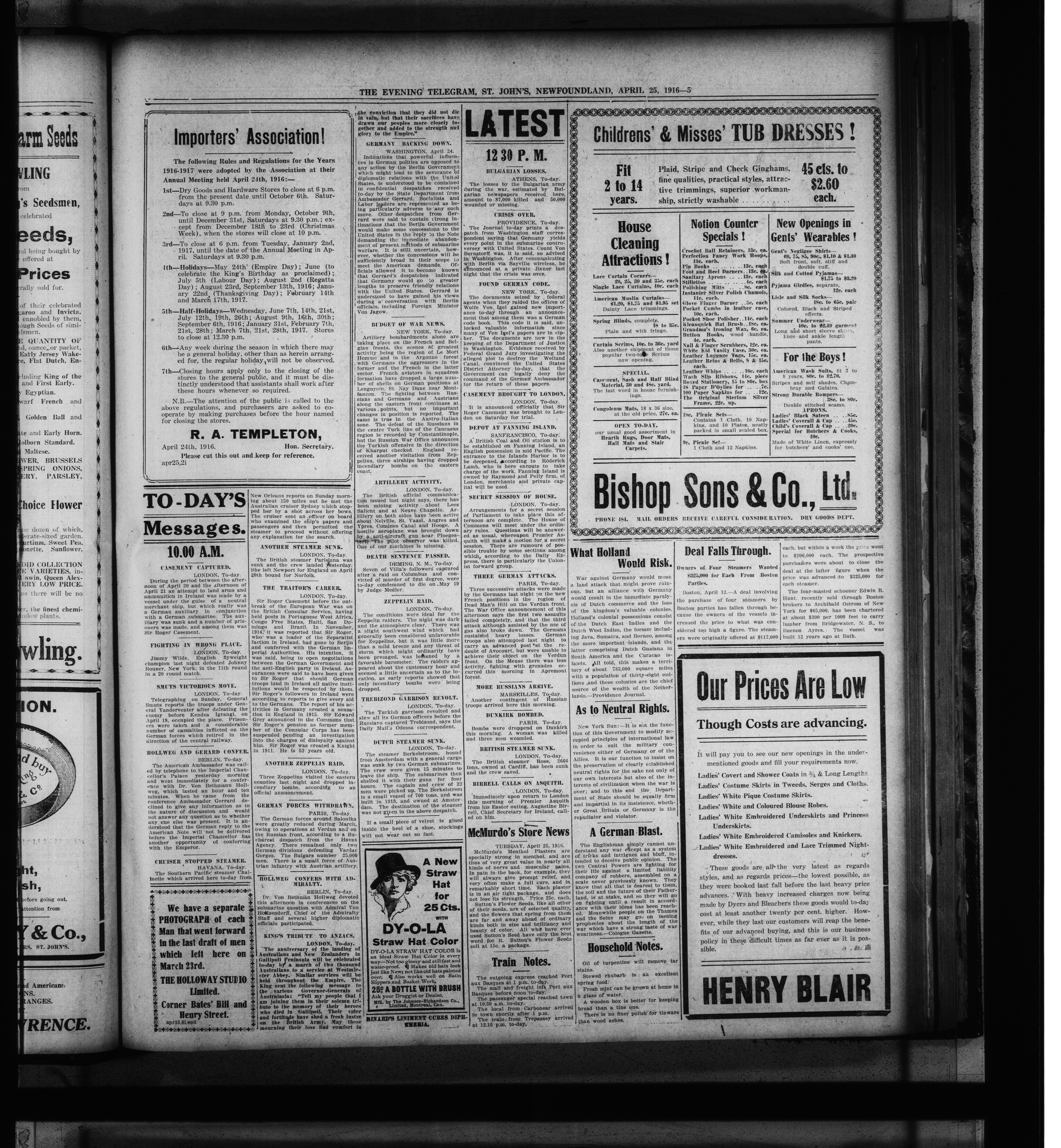 The Evening Telegram : Volume XXXVIII, Number 95 (April 25, 1916)