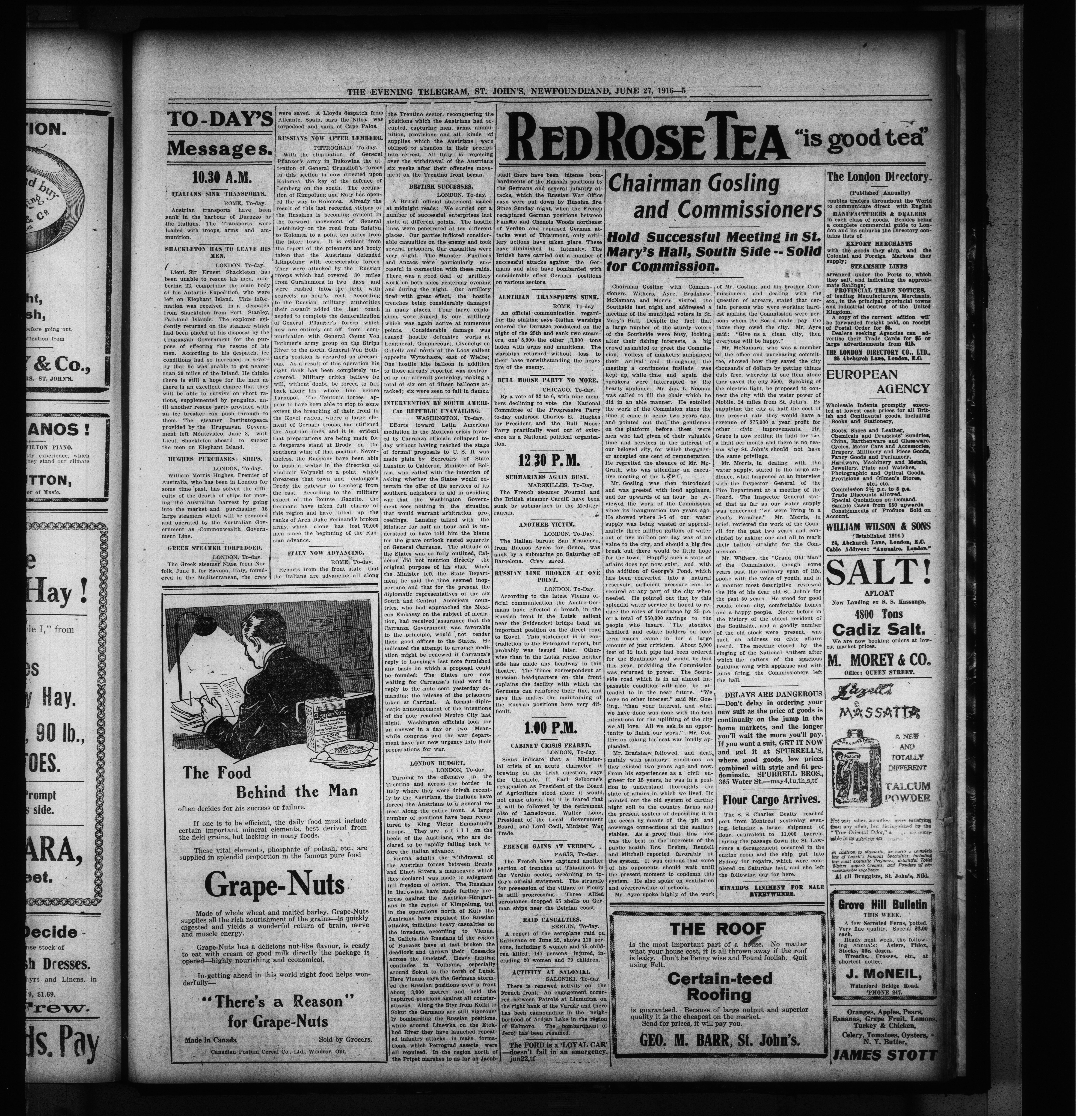 The Evening Telegram : Volume XXXVIII, Number 147 (June 27, 1916)