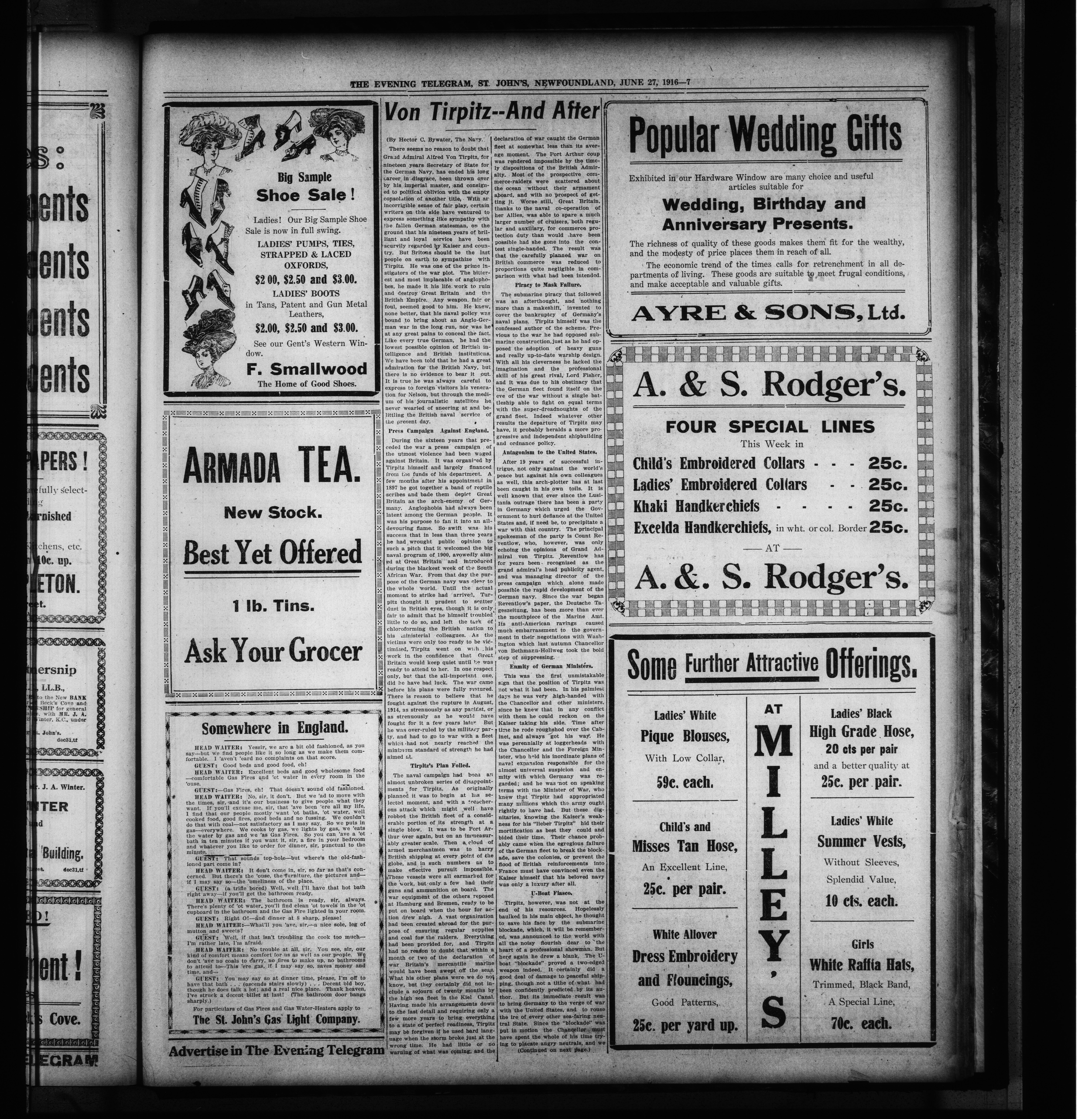 The Evening Telegram : Volume XXXVIII, Number 147 (June 27, 1916)