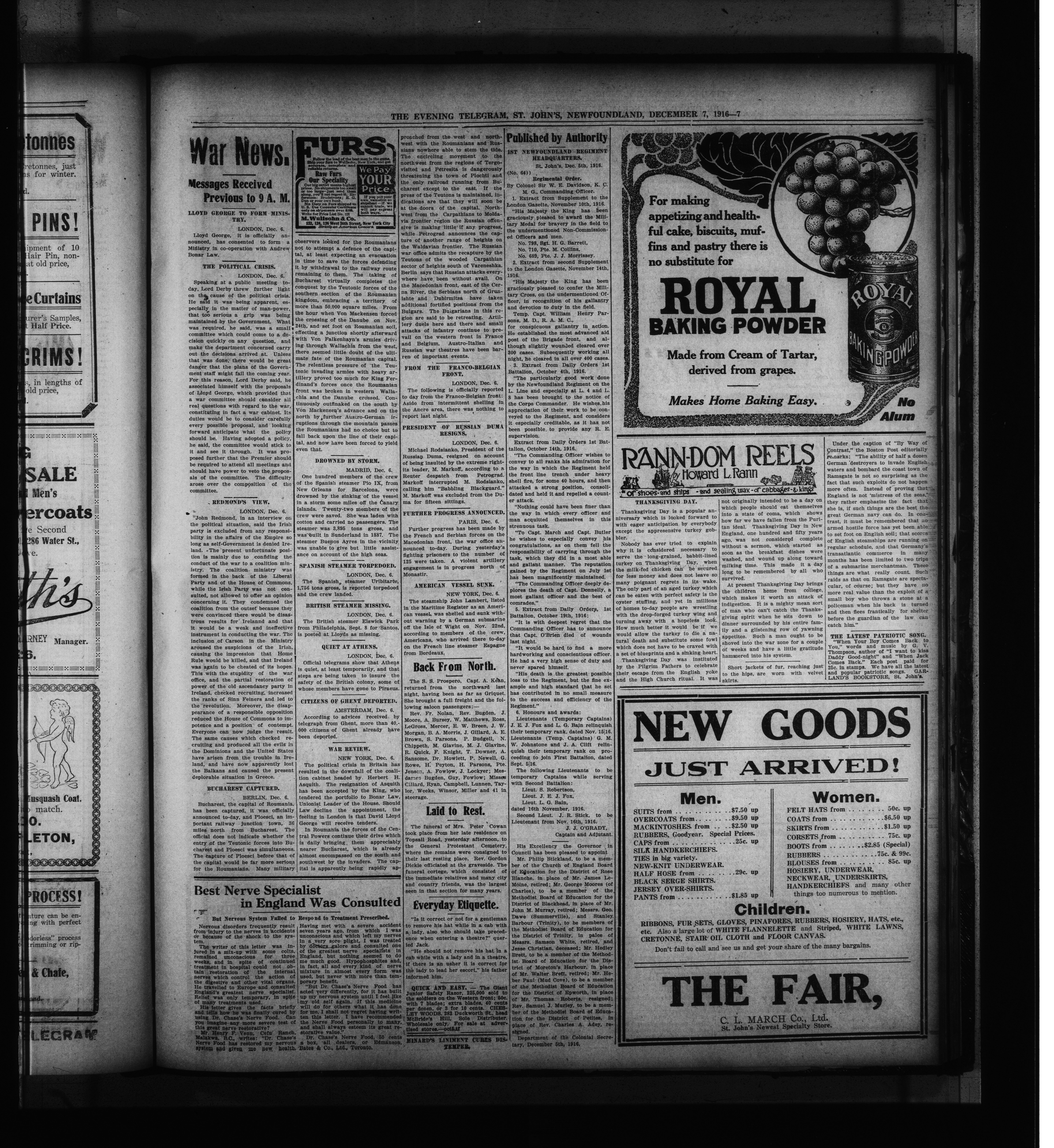 The Evening Telegram : Volume XXXVIII, Number 283 (December 7, 1916)