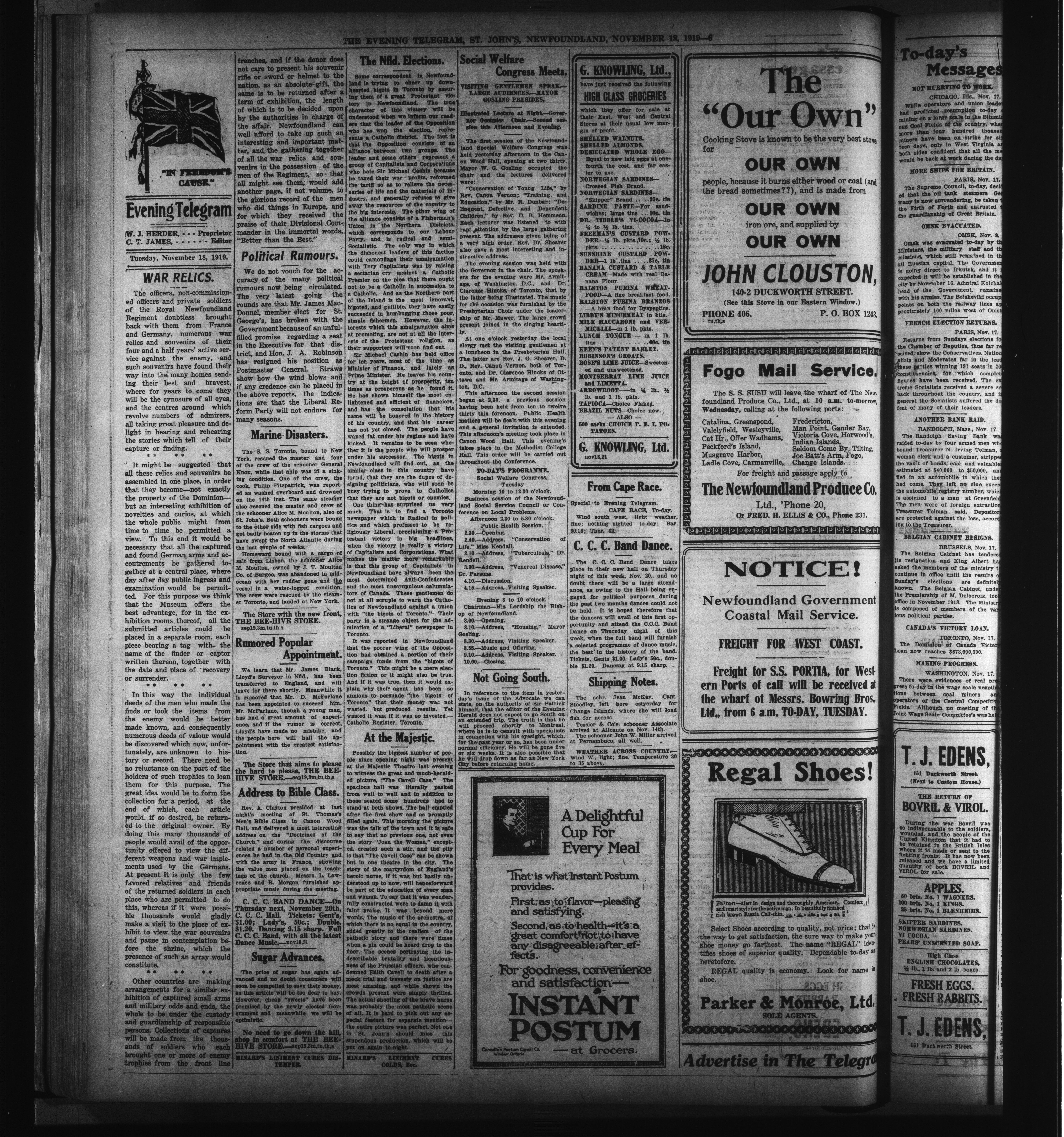 The Evening Telegram : Volume XLI, Number 264 (November 18, 1919)