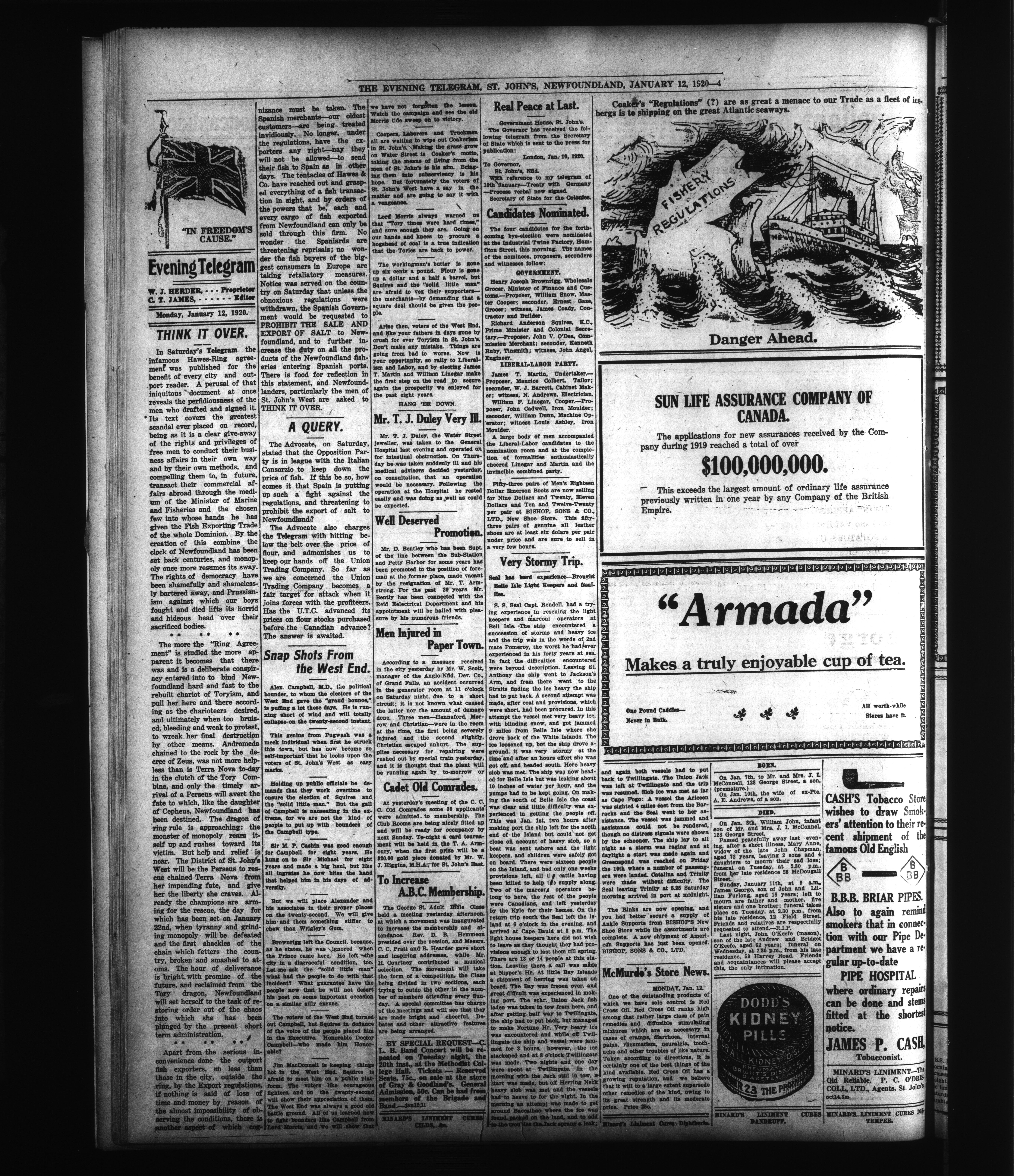 The Evening Telegram : Volume XLII, Number 9 (January 12, 1920)