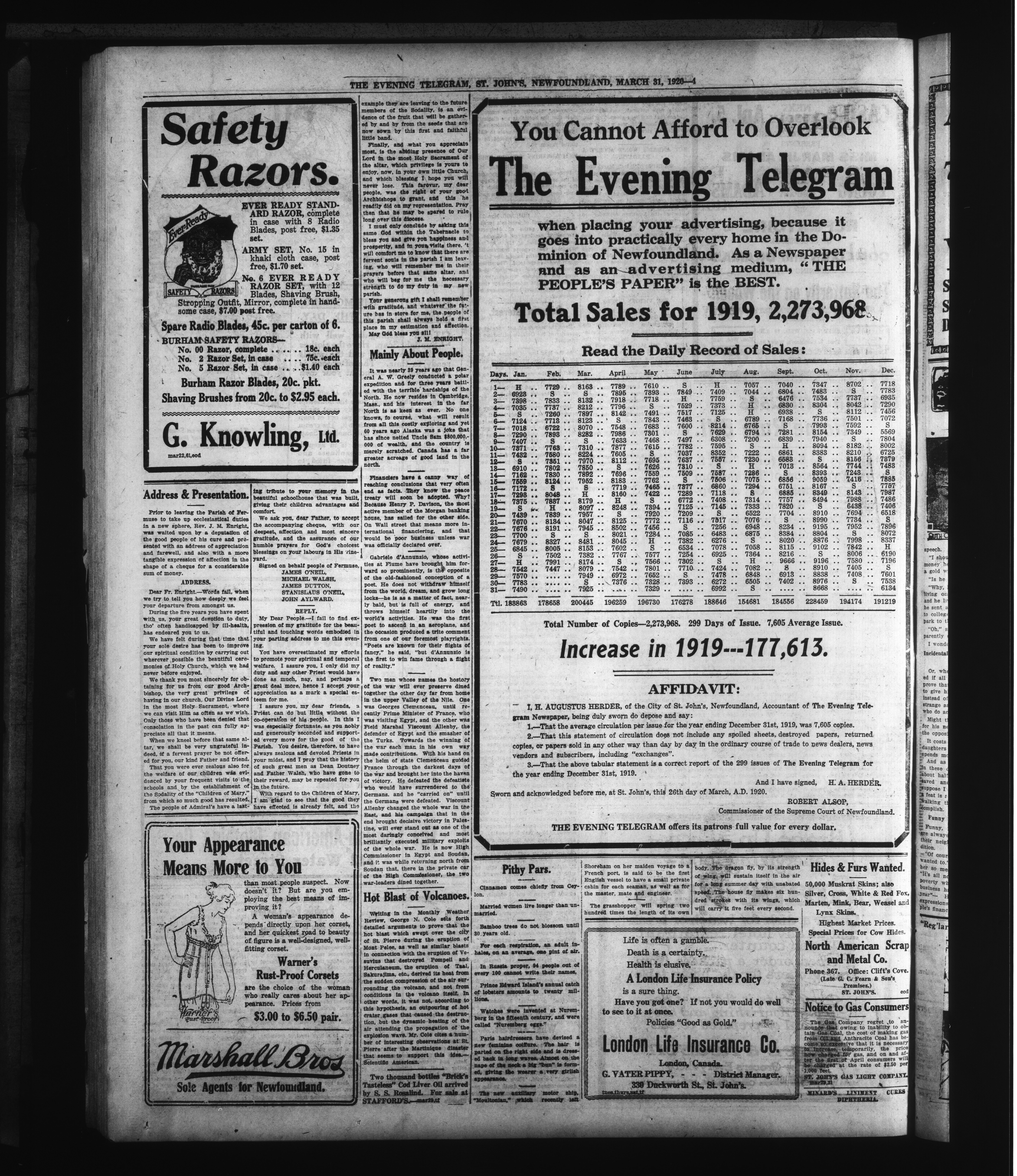 The Evening Telegram : Volume XLII, Number 74 (March 31, 1920)