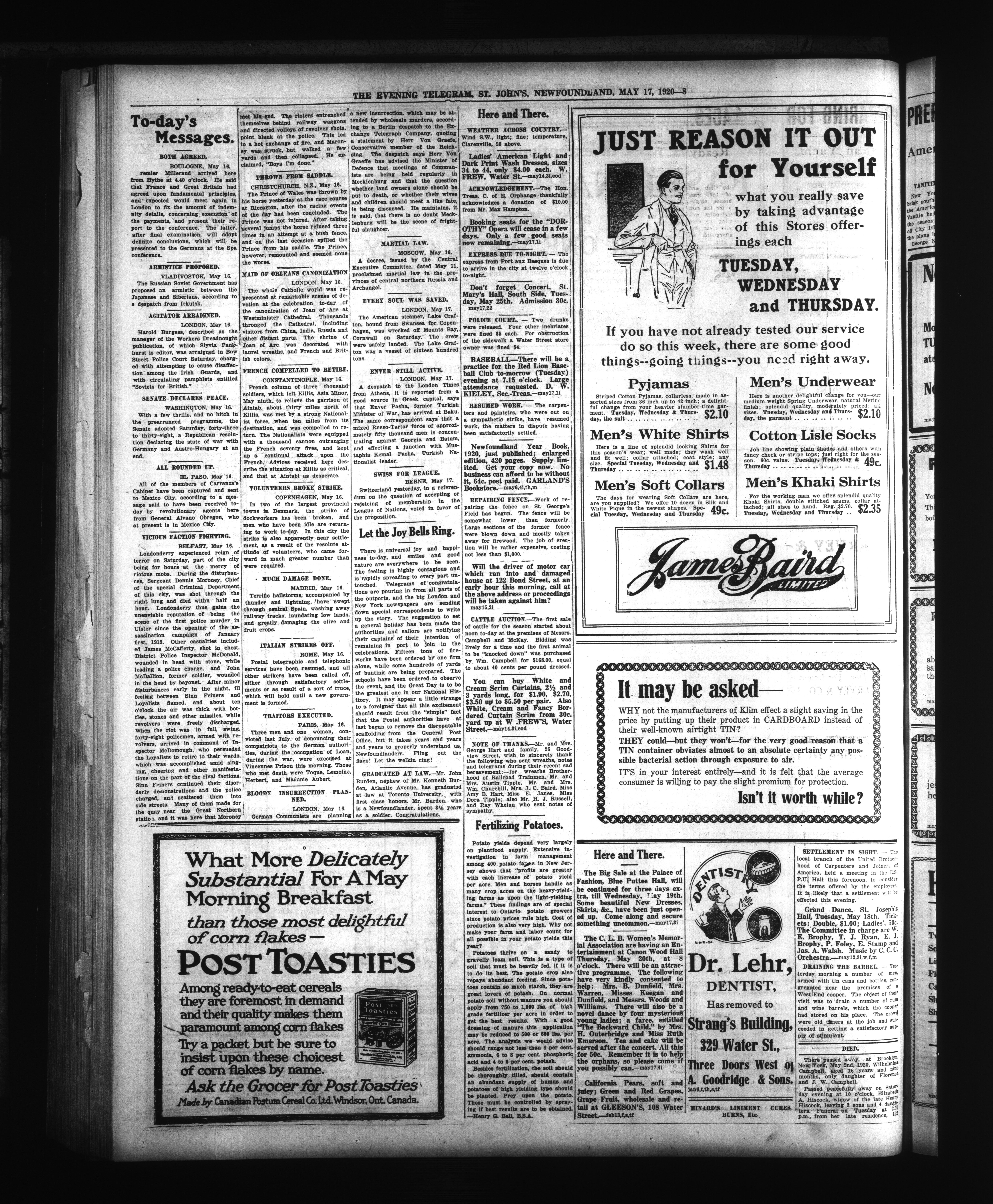 The Evening Telegram : Volume XLII, Number 113 (May 17, 1920)
