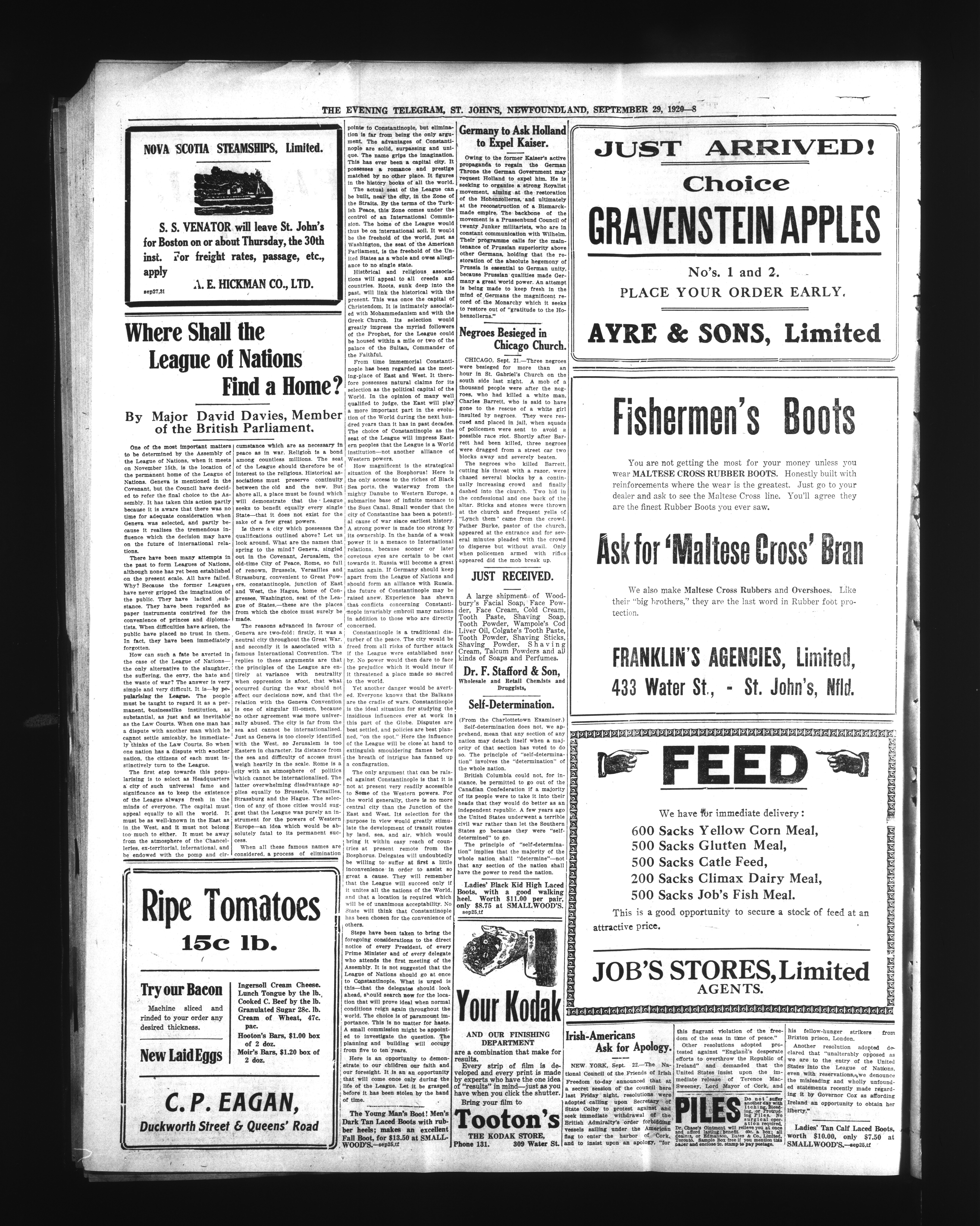 The Evening Telegram : Volume XLII, Number 225 (September 29, 1920)