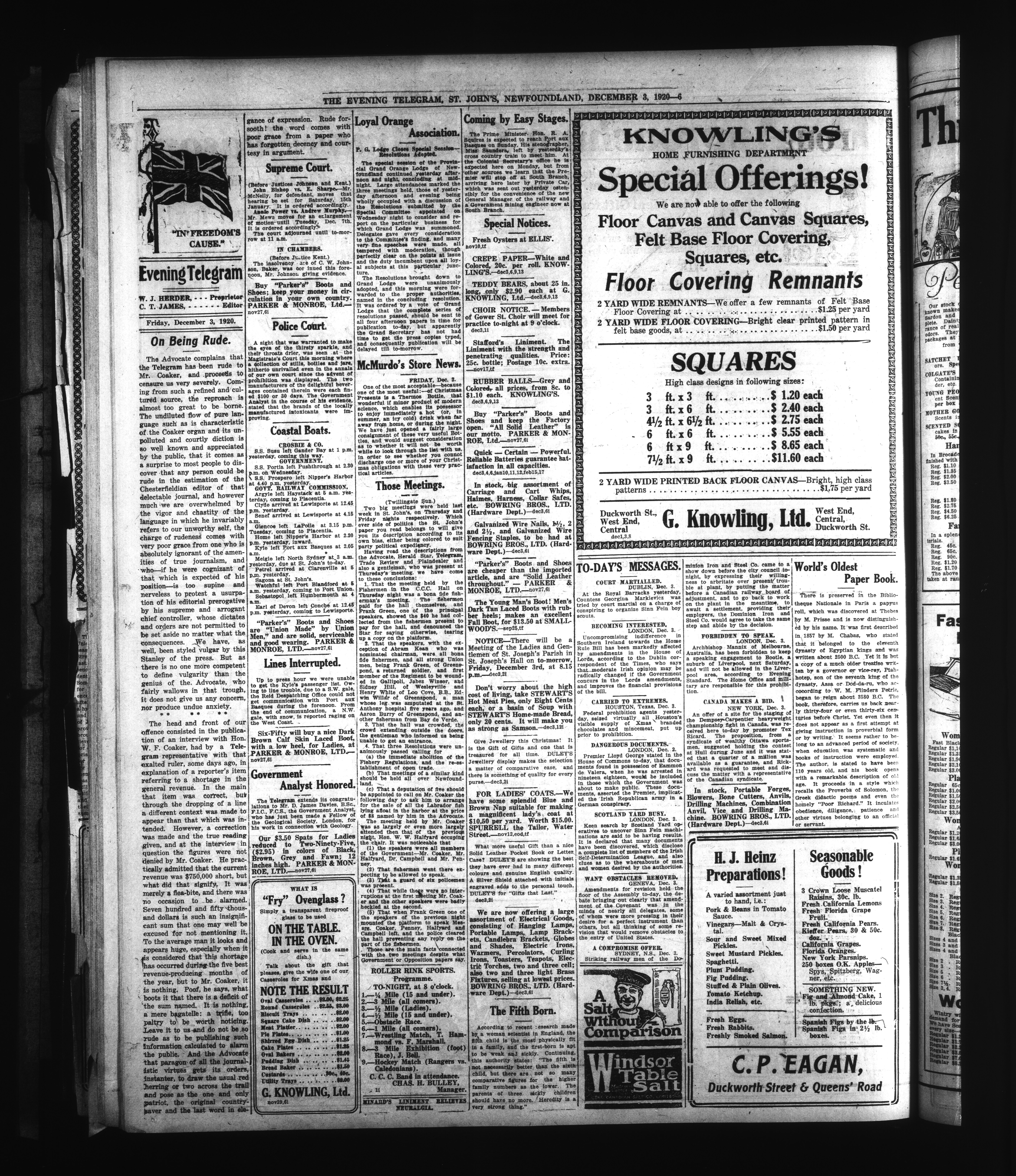 The Evening Telegram : Volume XLII, Number 280 (December 3, 1920)