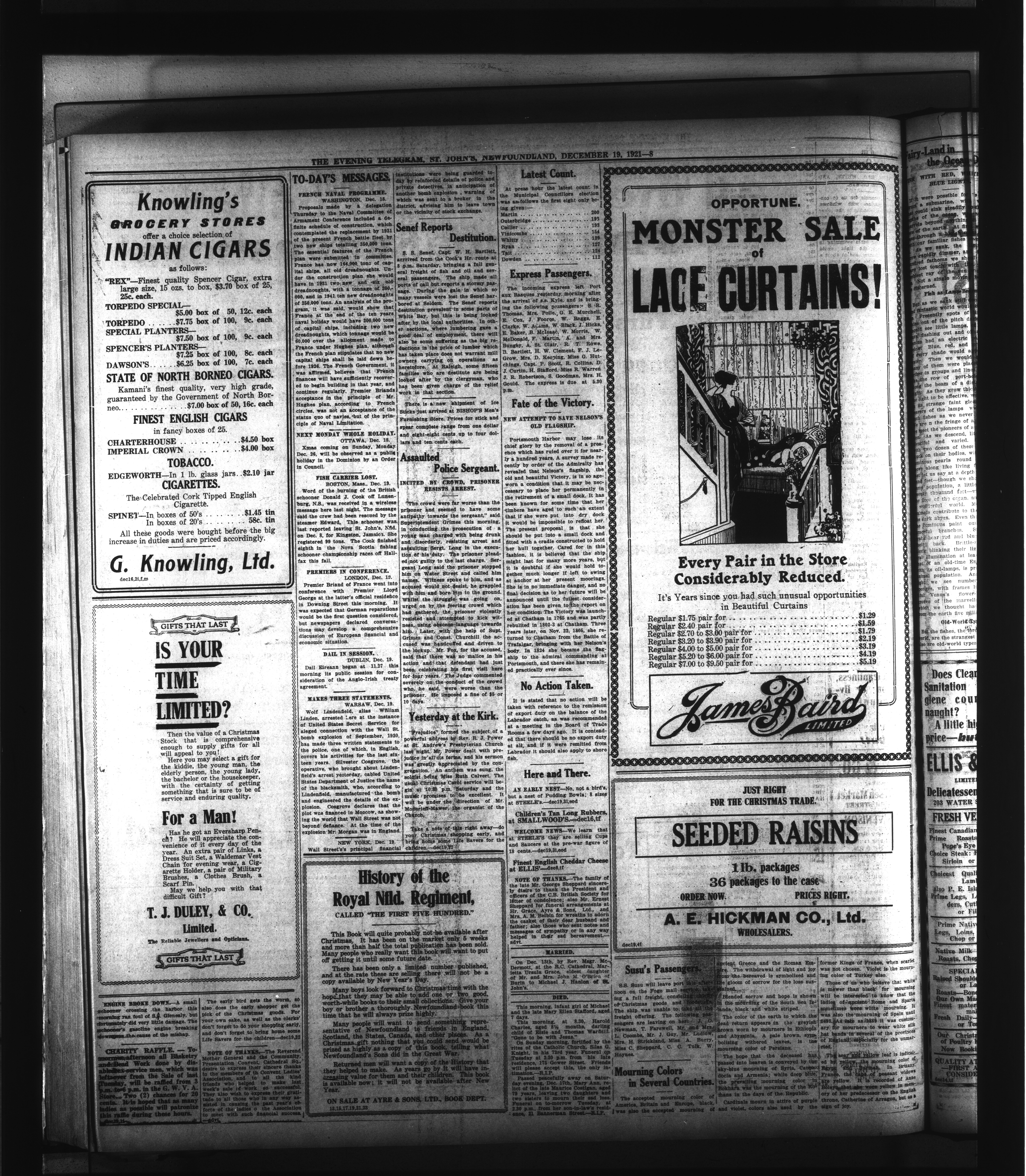 The Evening Telegram : Volume XLIII, Number 285 (December 19, 1921)
