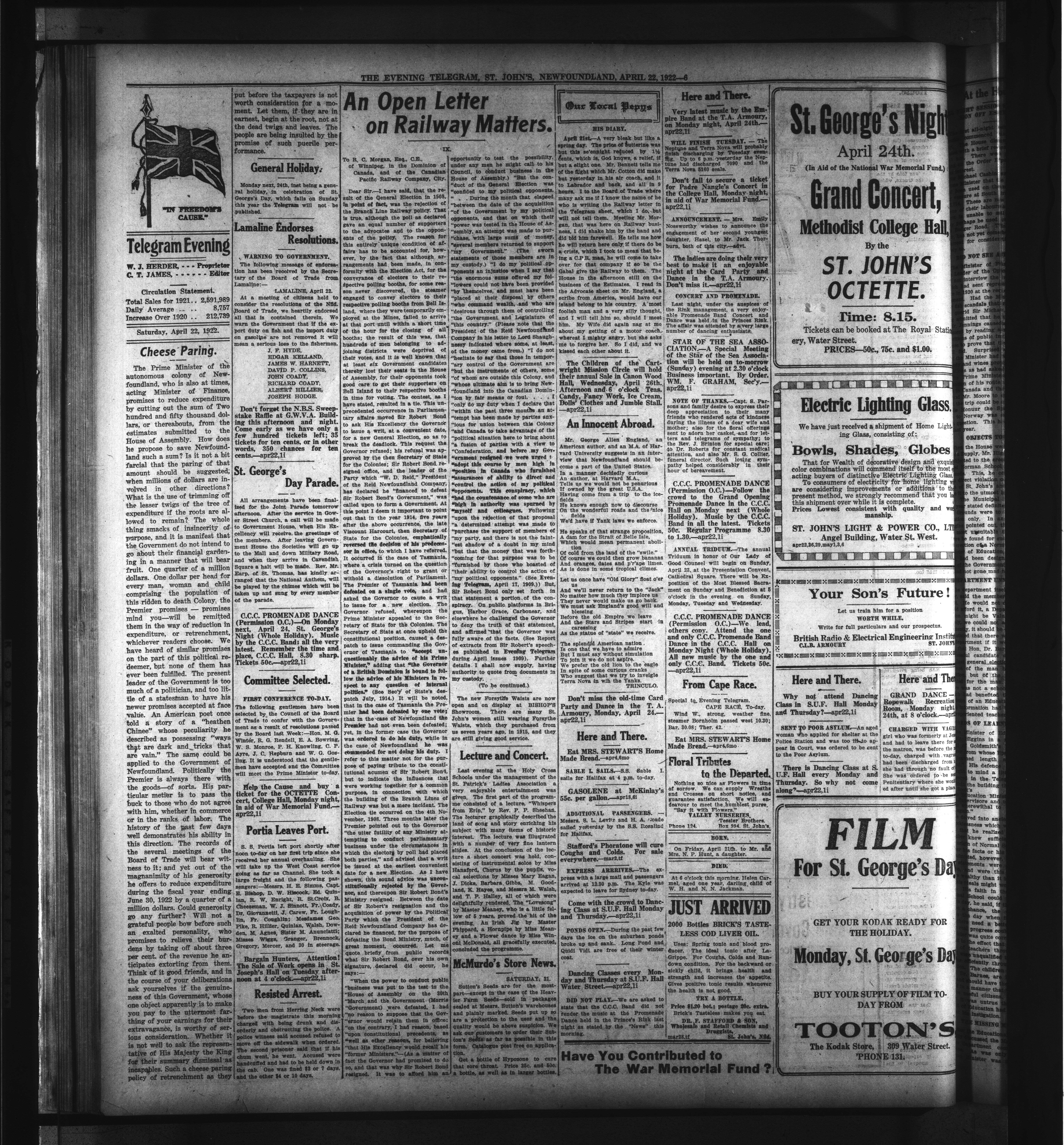 The Evening Telegram : Volume XLIV, Number 91 (April 22, 1922)