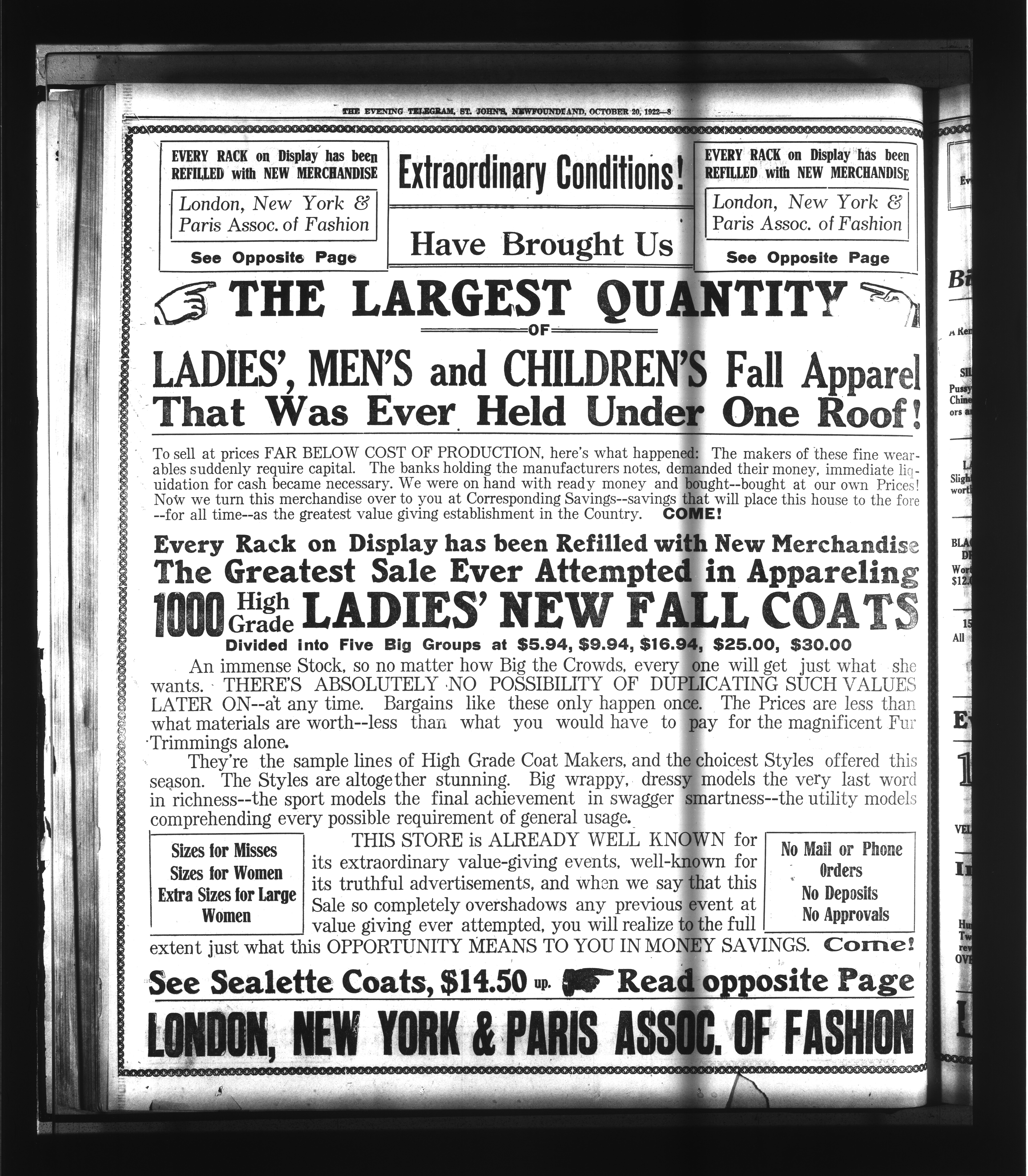 The Evening Telegram : Volume XLIV, Number 239 (October 20, 1922)