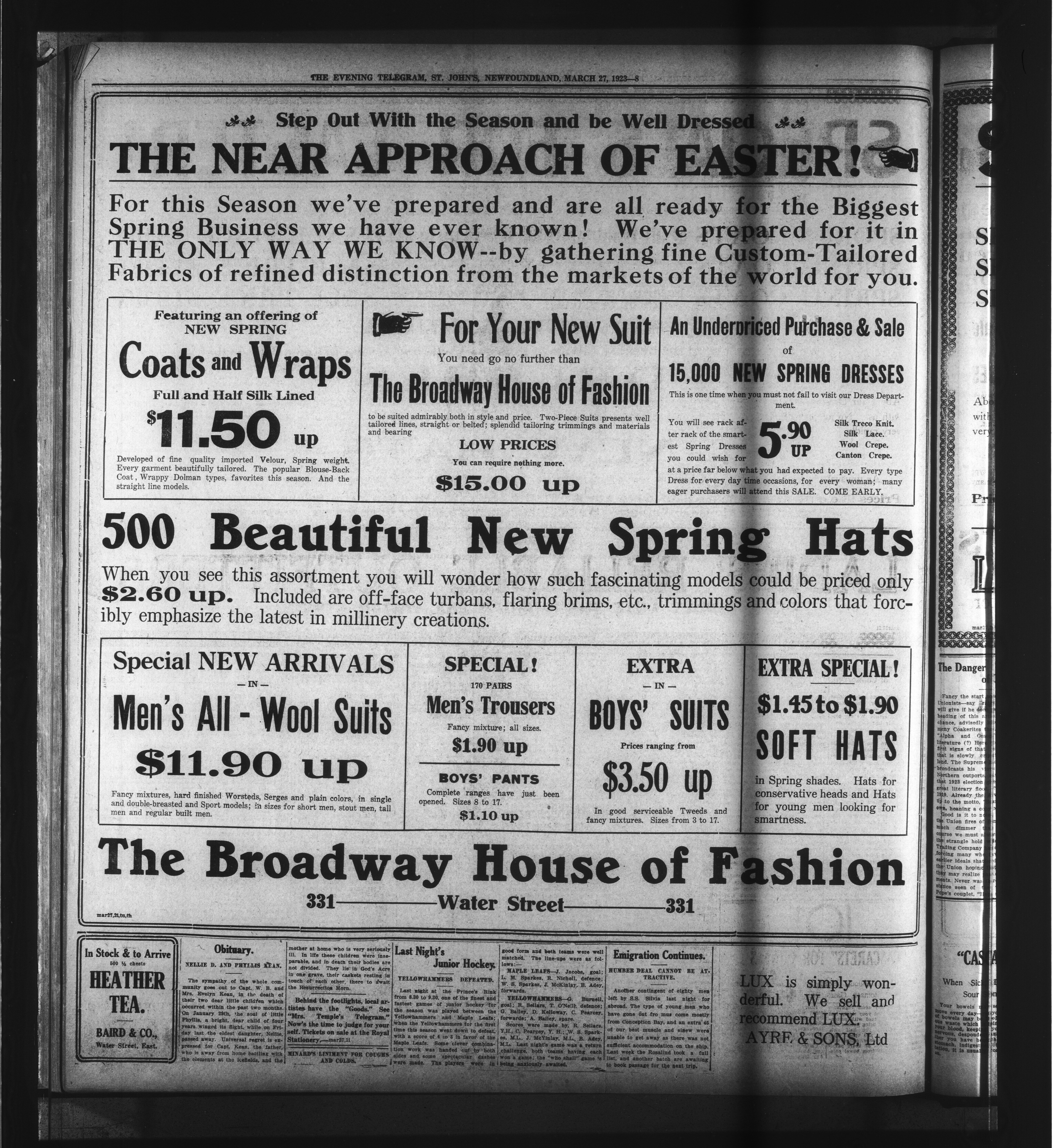 The Evening Telegram : Volume XLV, Number 70 (March 27, 1923)